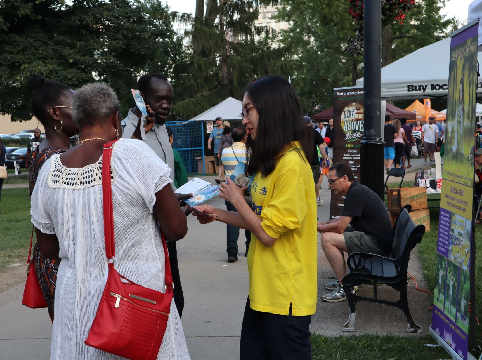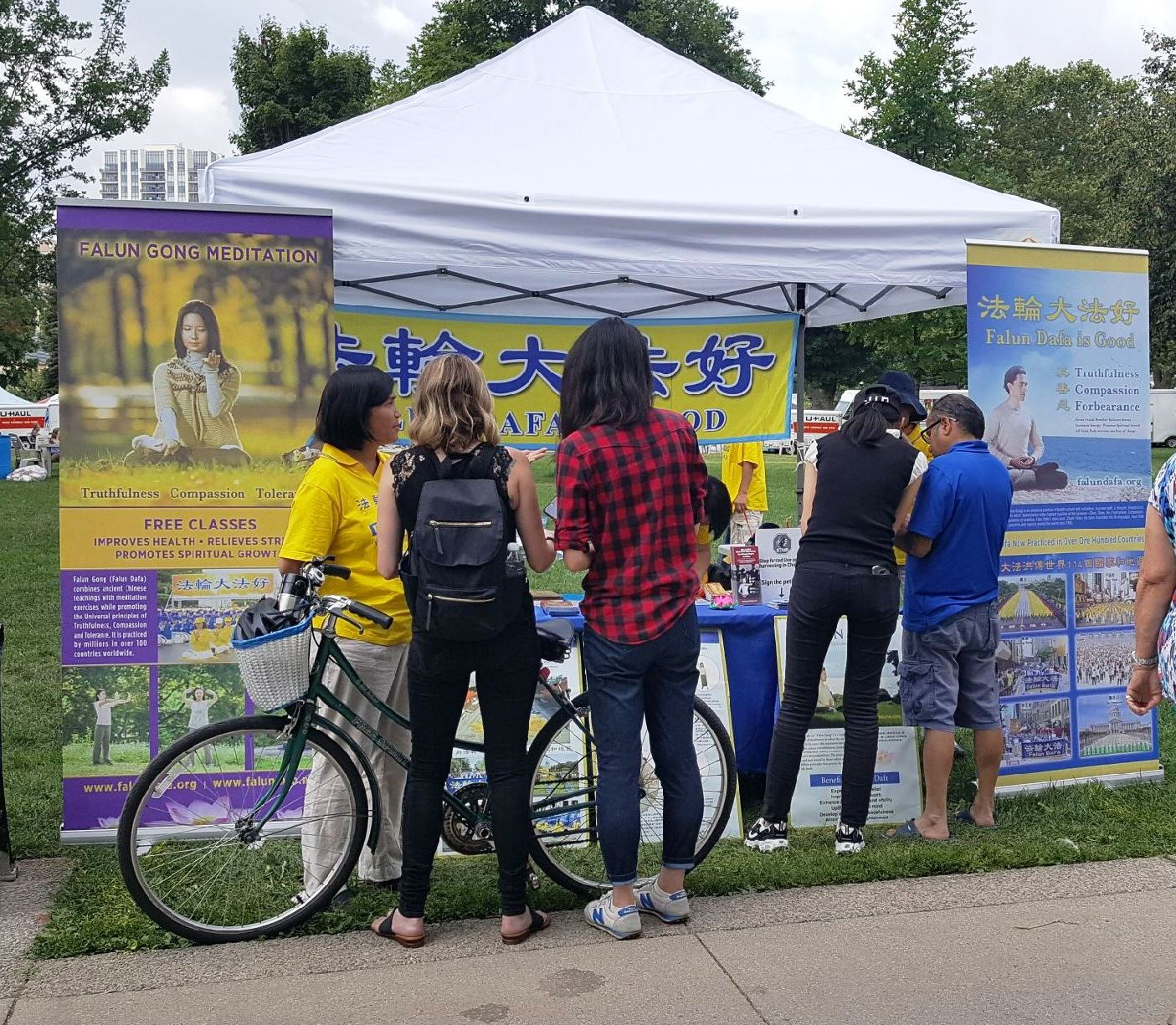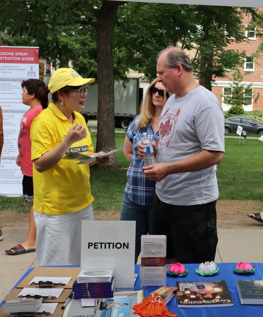 来自湖北武汉的吴先生和李女士到加拿大探亲。看到法轮功学员的展位,李先生径直走向法轮功学员,还没等学员开口,李先生便说:“我知道你们法轮功,你们是教人向善。中共的迫害实在太可恶了,它不应该迫害你们。我也知道你们有‘七二零’的活动,当年(一九九九年)迫害的太疯狂了,基本上是家家都会去找有没有修炼法轮功的,只要有就拖出来带走。善恶有报,中共会有报应的。”