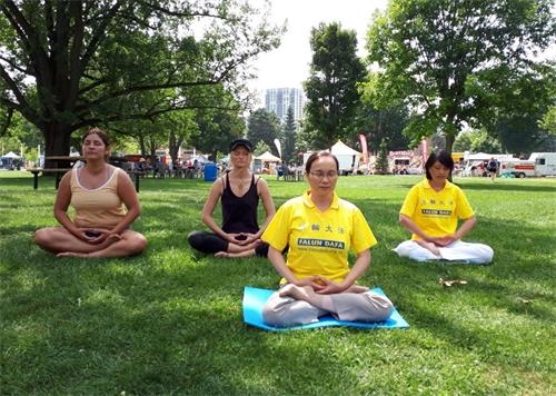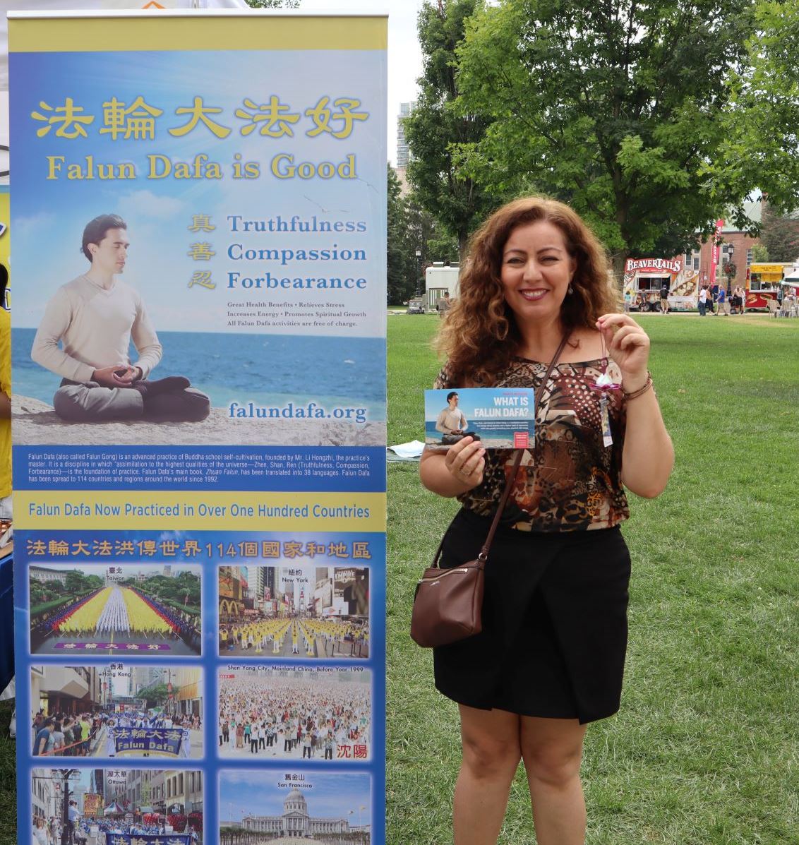 移民加拿大的安娜(Ana)女士来自于巴西,看到在平静炼功的法轮功学员,她驻足表示想学功。安娜认真学习了五套功法后说:“当我炼功时,我觉得我必须要非常集中我的精力,那种平静、平和的感觉真是太好了。”