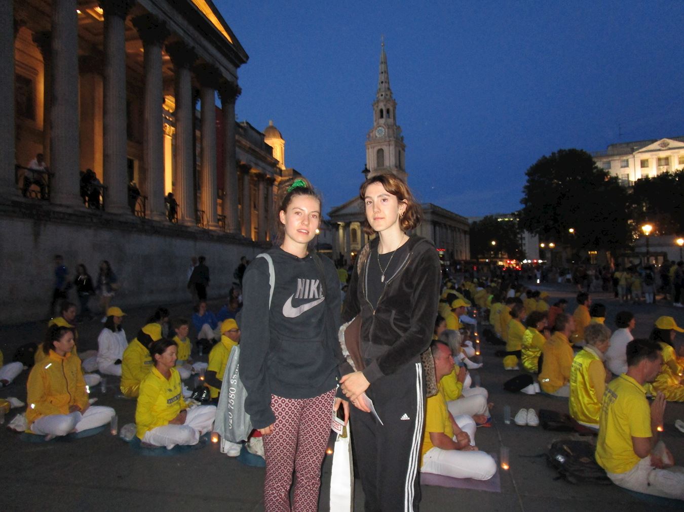 特拉法加广场上,在大学学习英文和哲学的凯特琳·波特(Caitlin Porter)和在伦敦一家电视公司工作的罗希·彭德(Rosie Pender)在征签表上签名后,吃惊地表示这样重要的事情以前却没有在媒体上看到。她们称赞法轮功学员举办这样的活动非常好,让她们得知了正在发生着的这场迫害。
