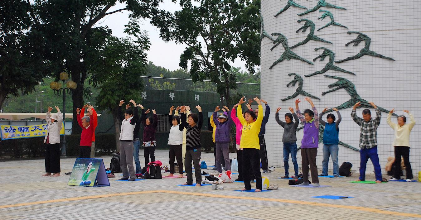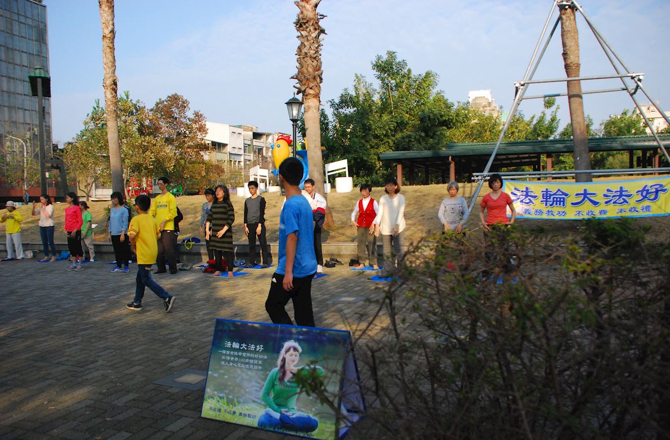 ![]() 图4:法轮功学员在台湾嘉义文化公园集体炼功 |