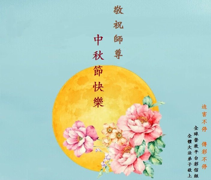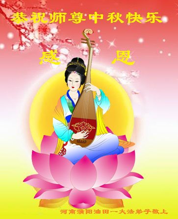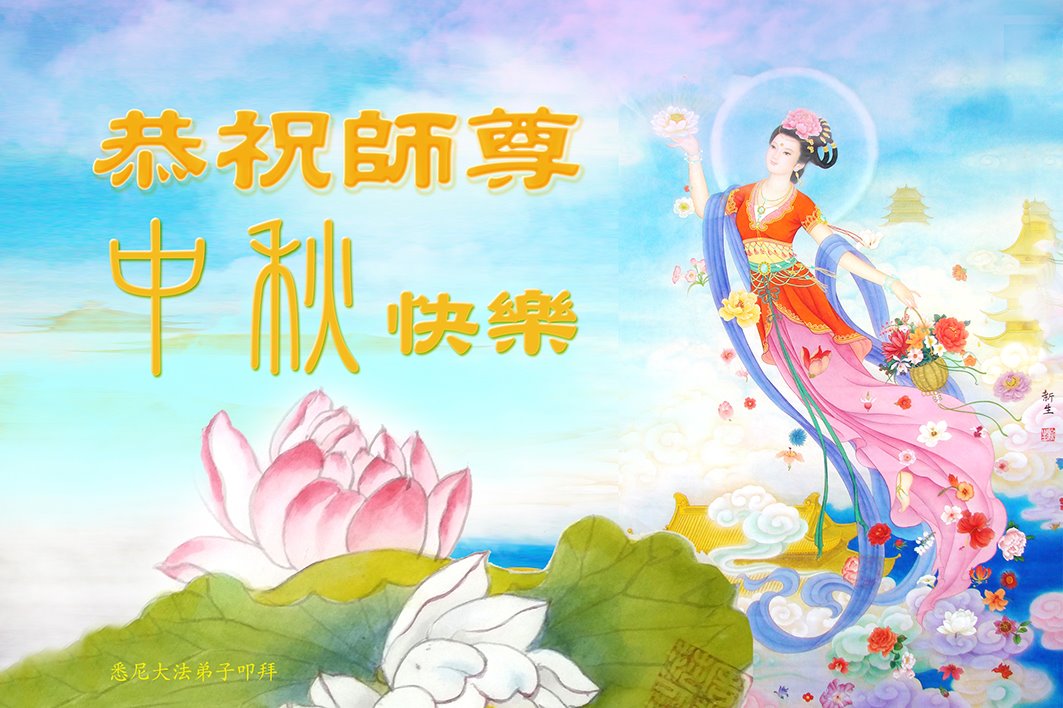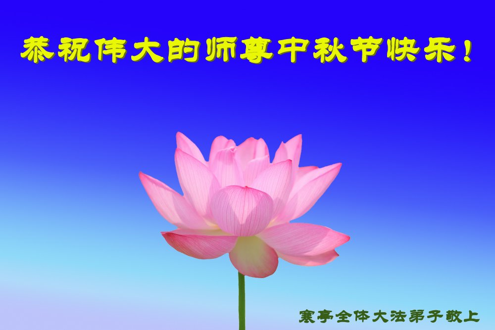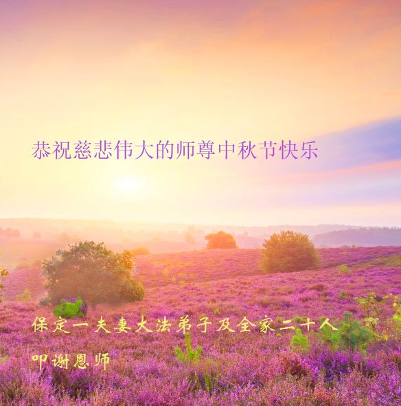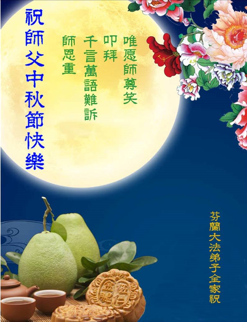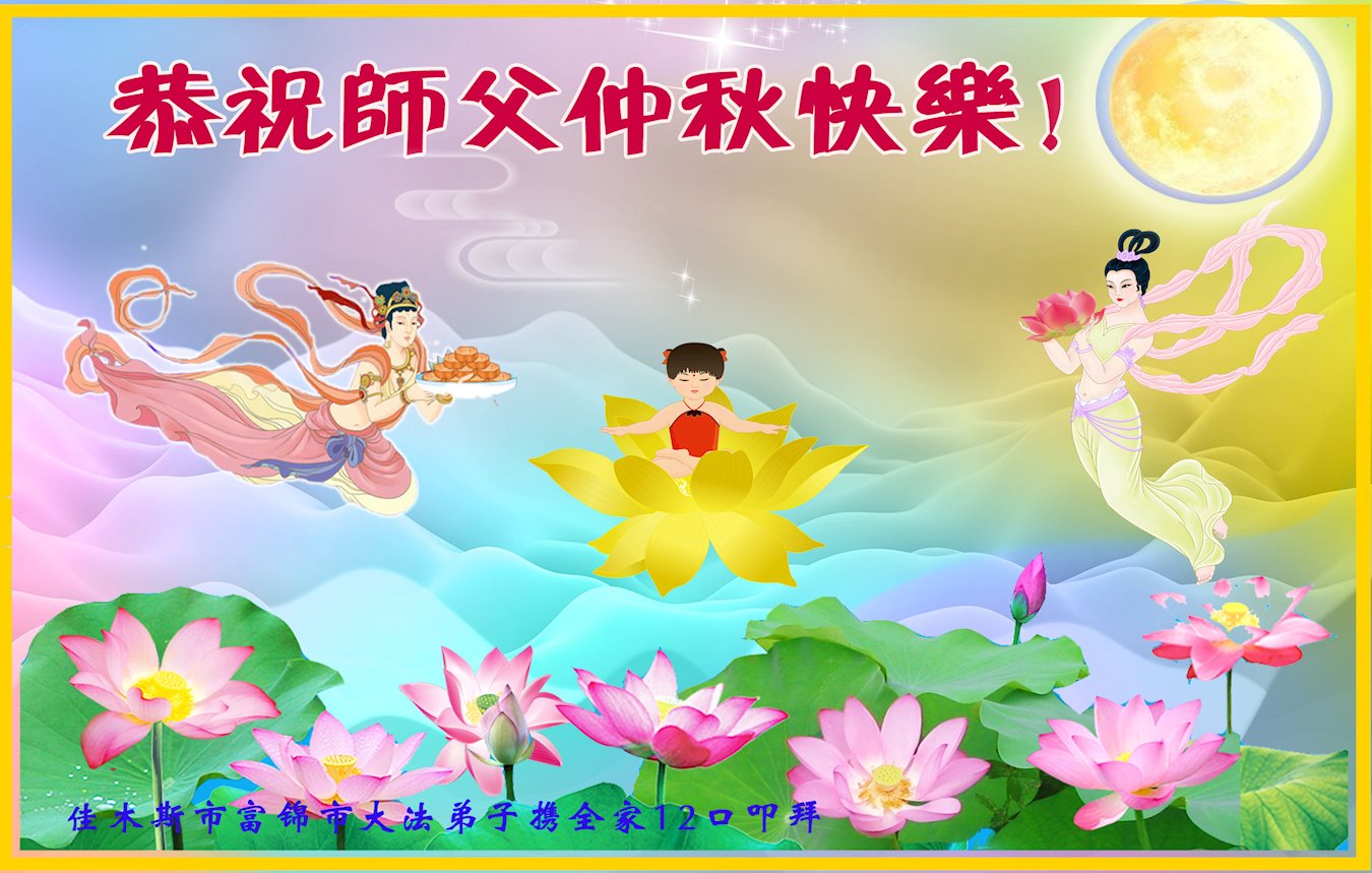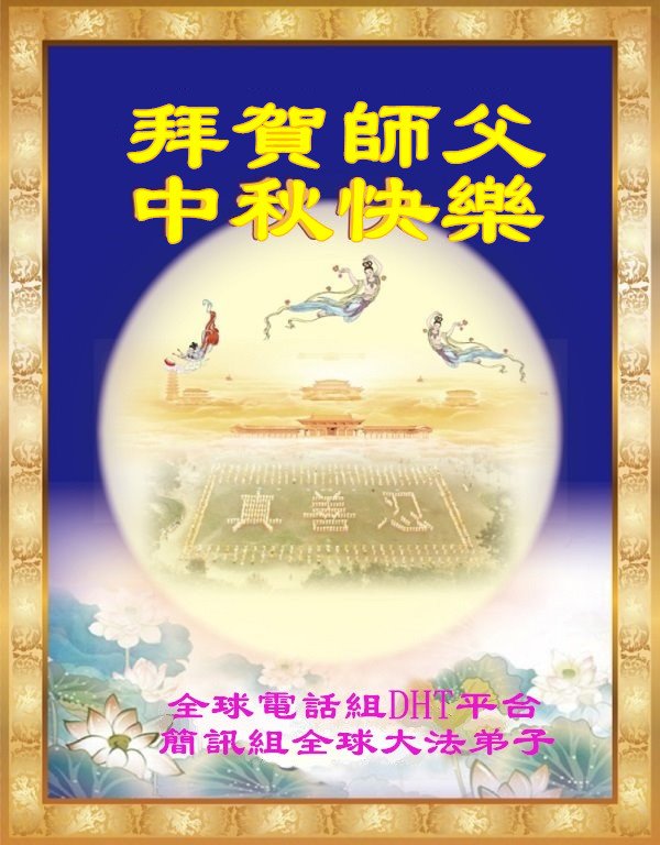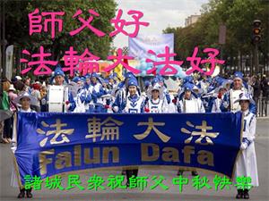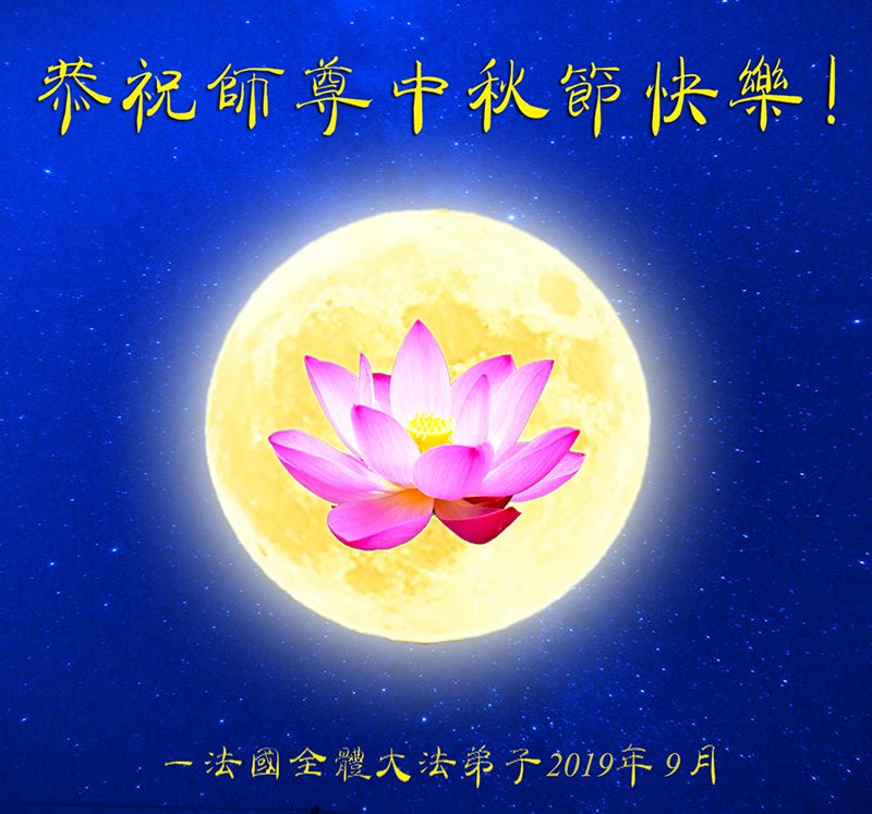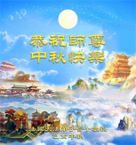 您好!今年的中秋佳节到来了。法国大法弟子在这个敬谢神恩的传统节日里向师尊问好,无限感恩师父的慈悲苦度,恭祝慈悲伟大的师父中秋快乐!