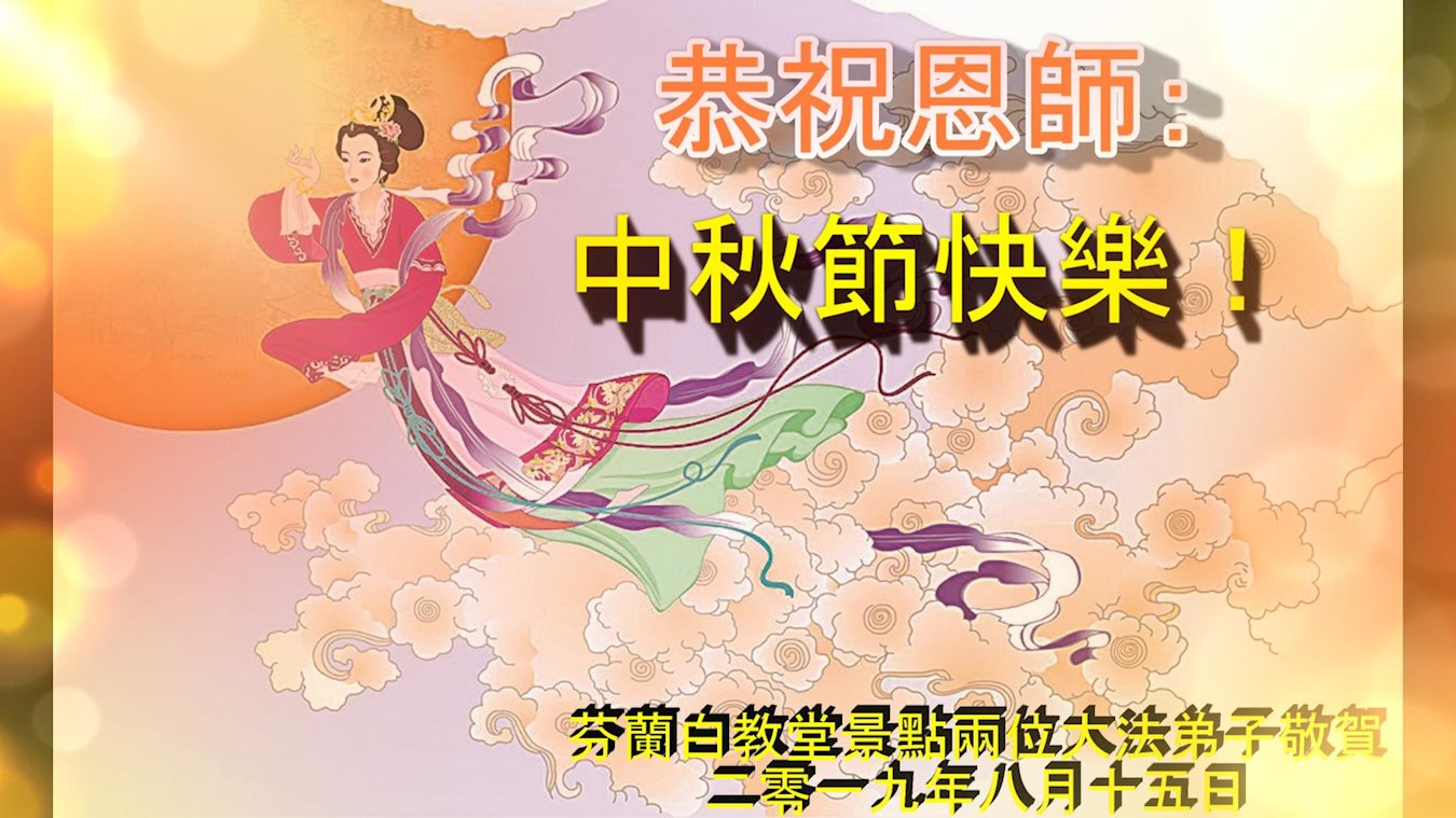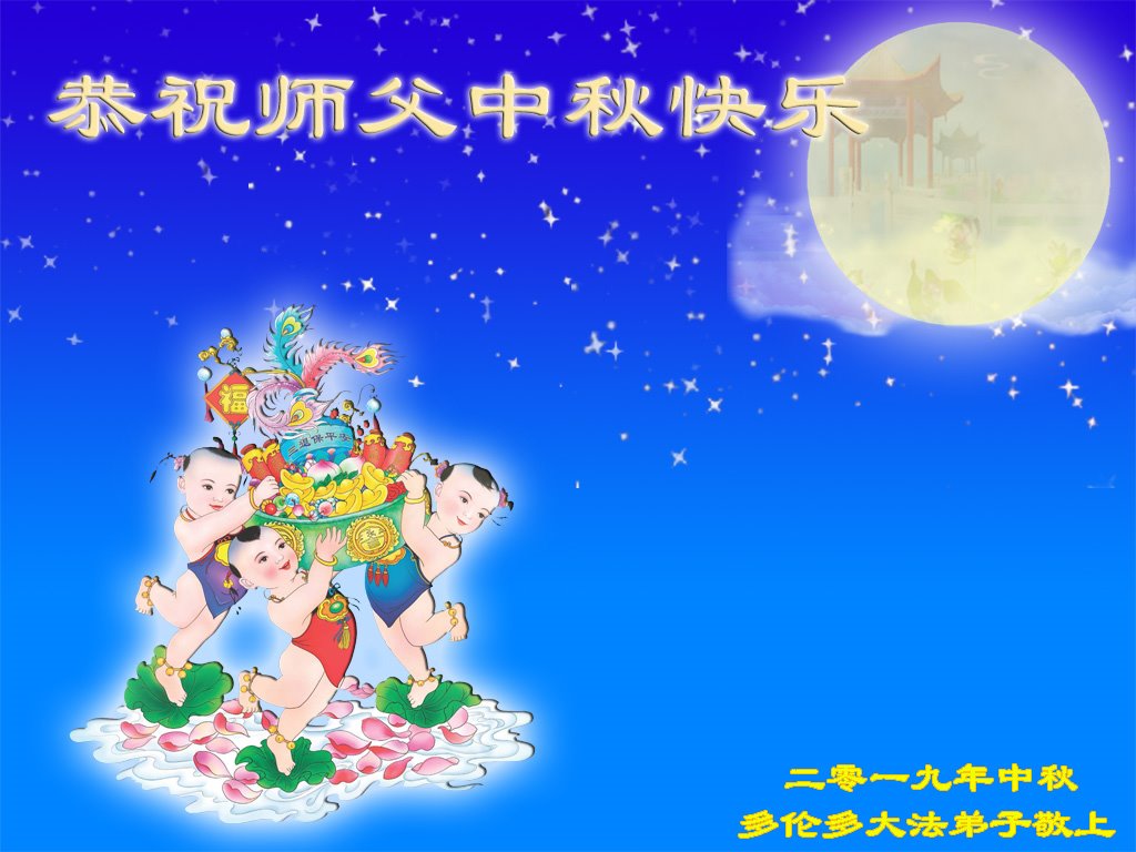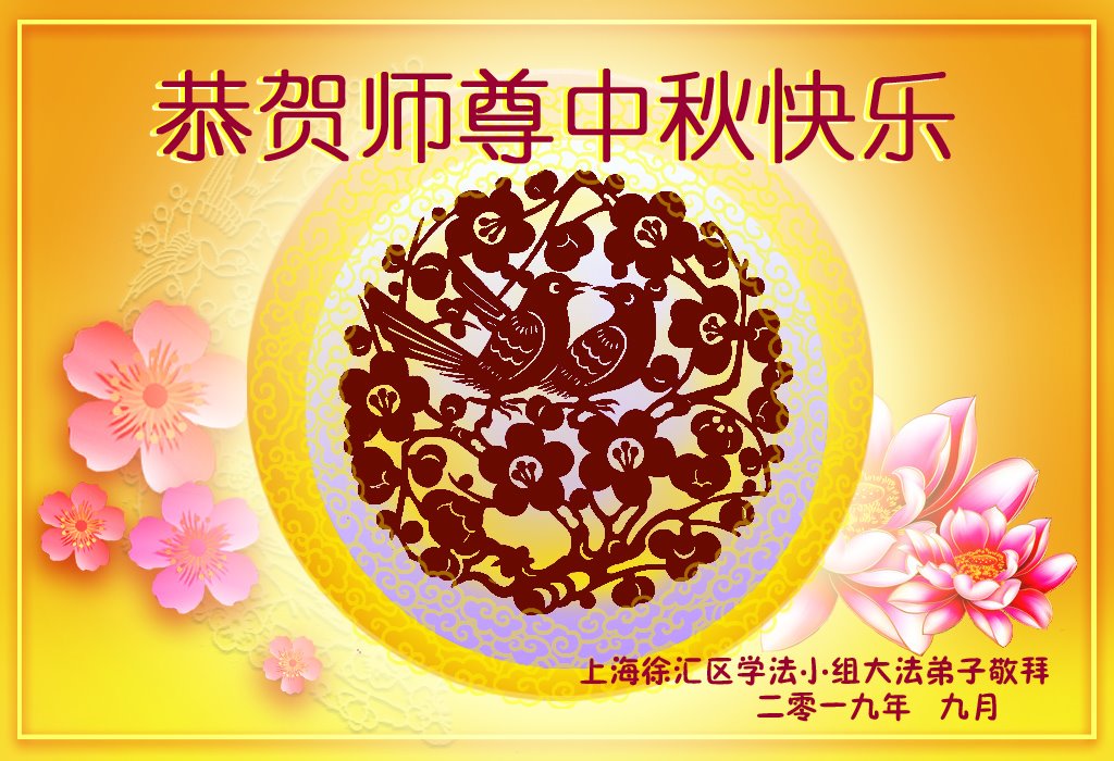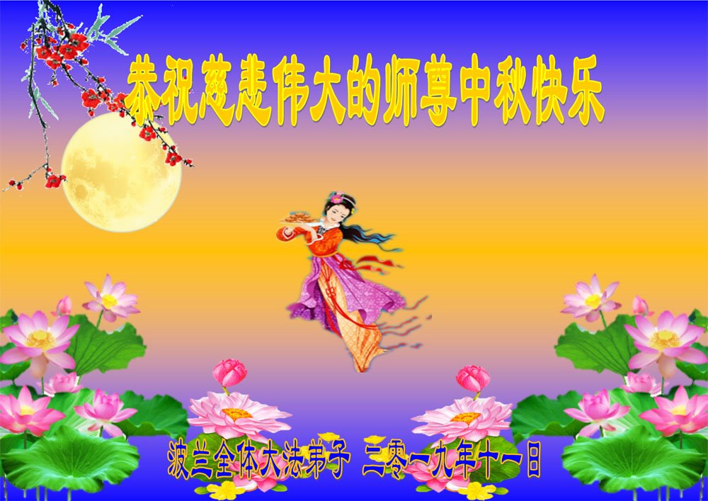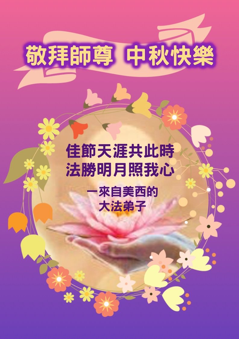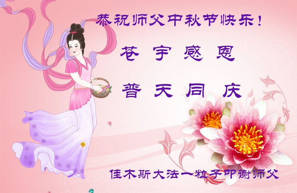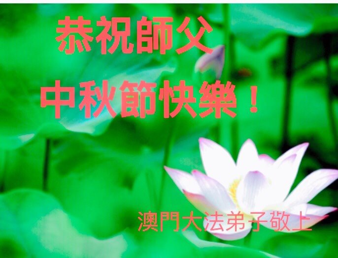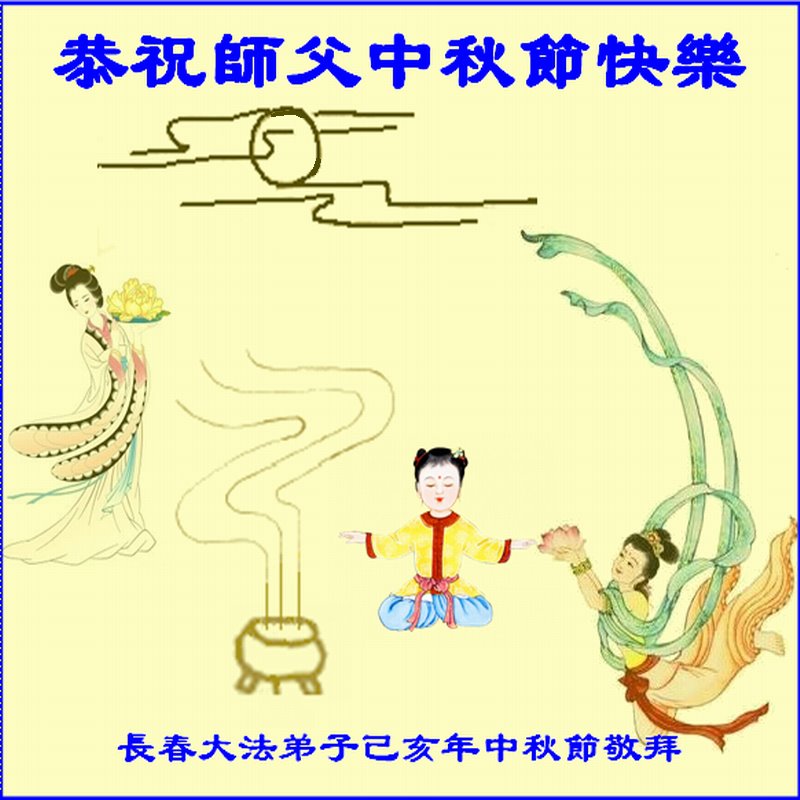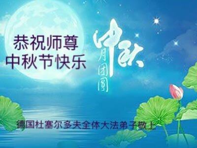 您好!今年的中秋佳节到来了。法国大法弟子在这个敬谢神恩的传统节日里向师尊问好,无限感恩师父的慈悲苦度,恭祝慈悲伟大的师父中秋快乐!