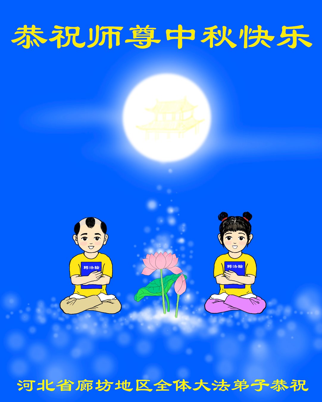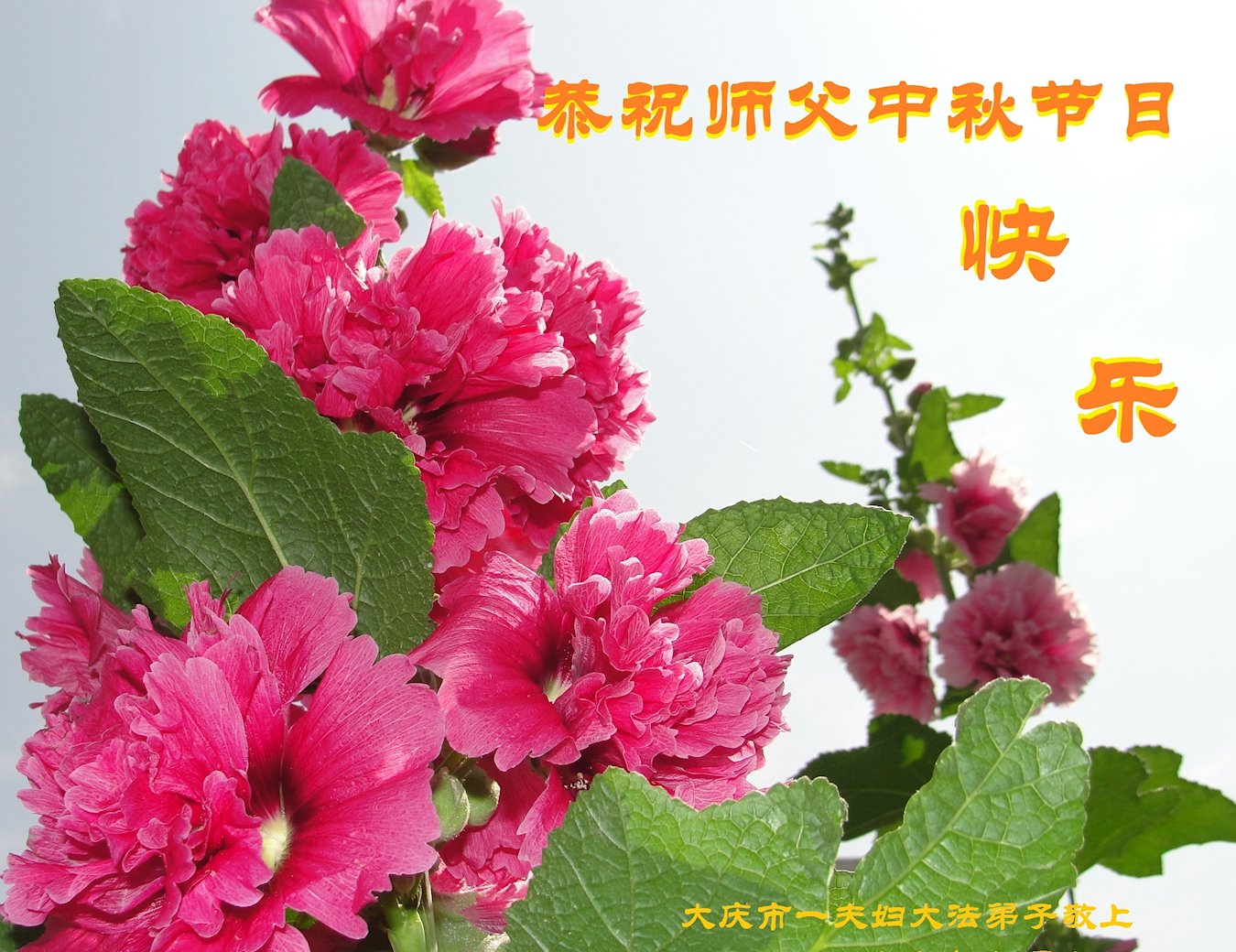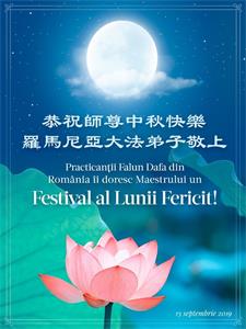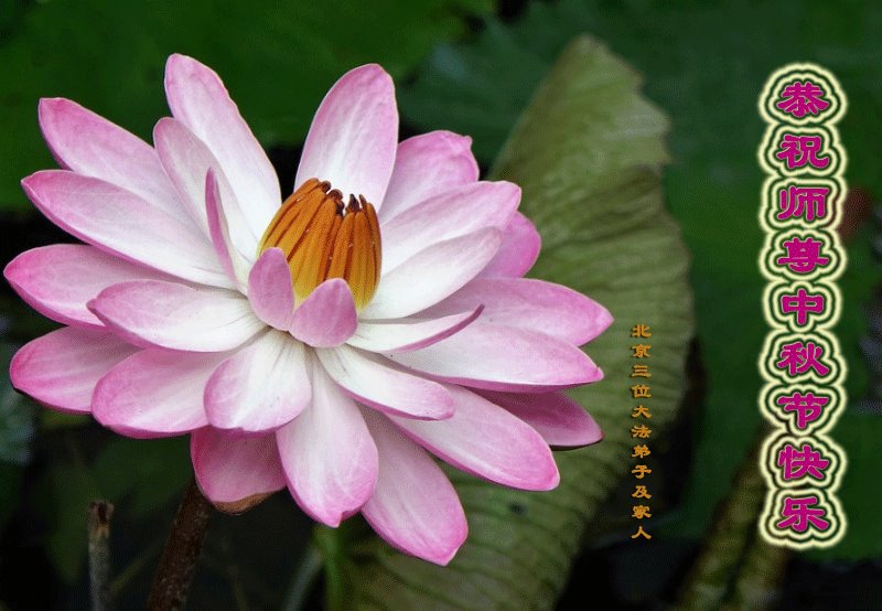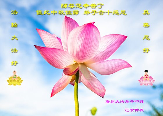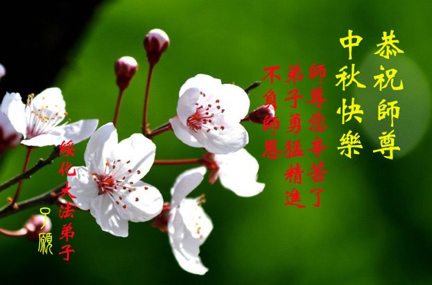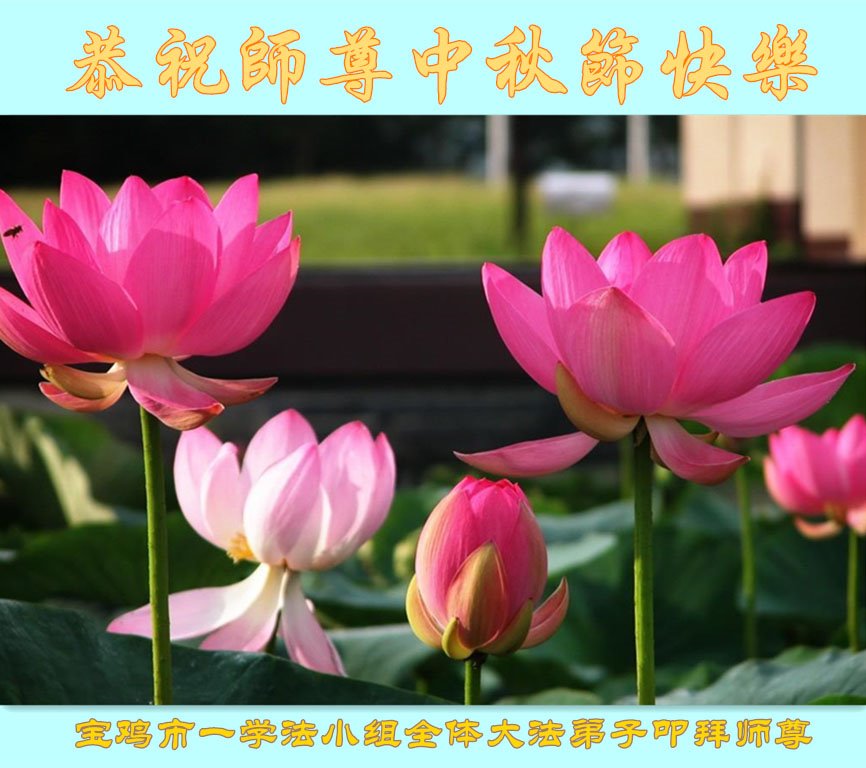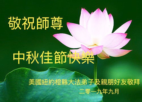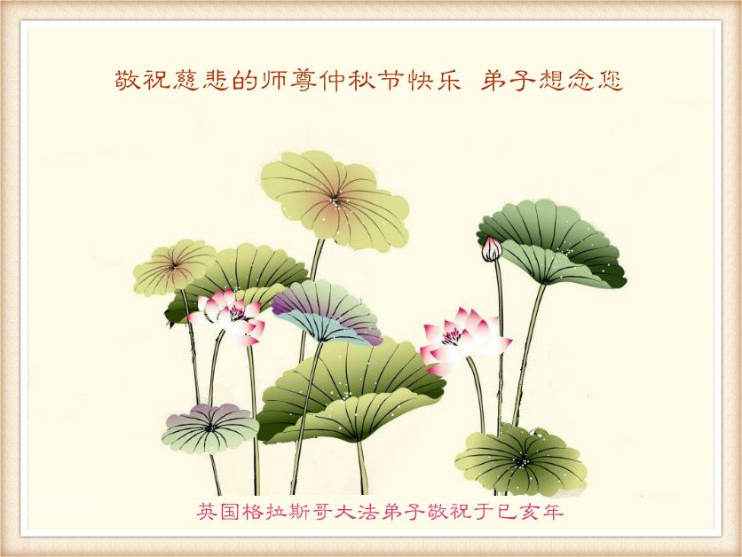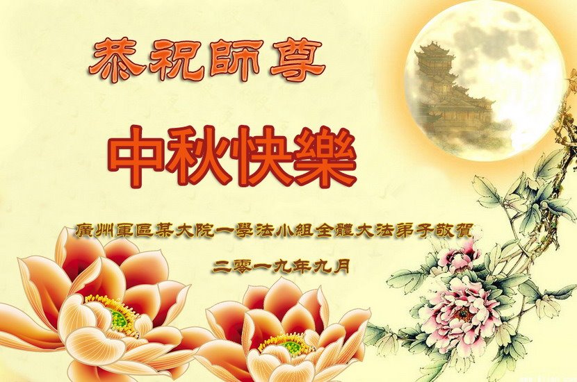 您好!今年的中秋佳节到来了。法国大法弟子在这个敬谢神恩的传统节日里向师尊问好,无限感恩师父的慈悲苦度,恭祝慈悲伟大的师父中秋快乐!
