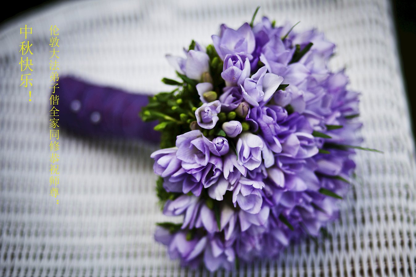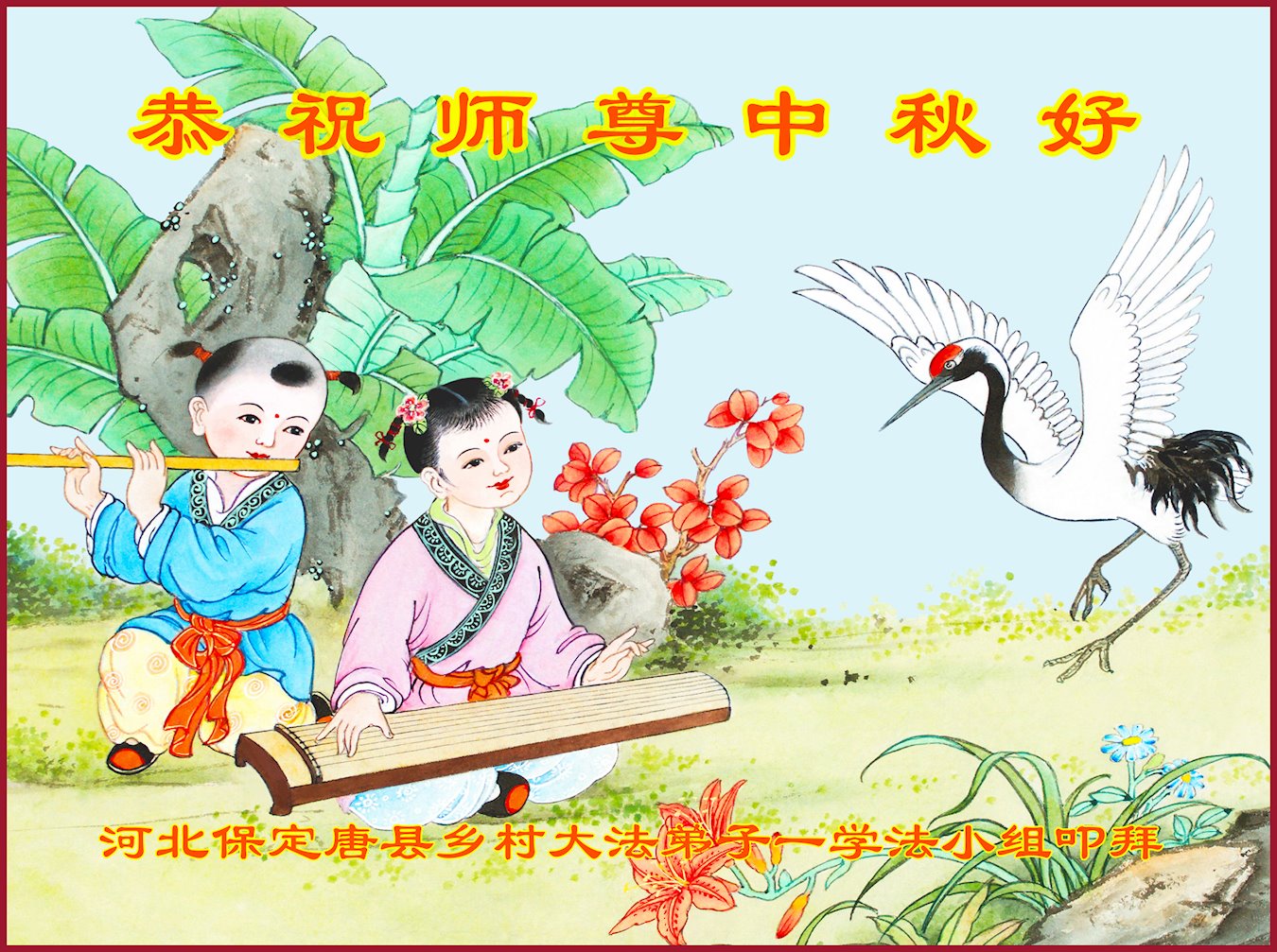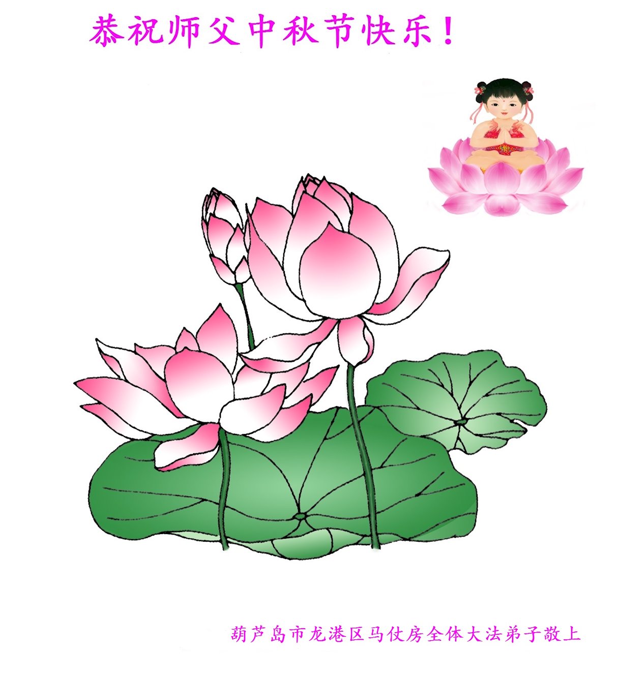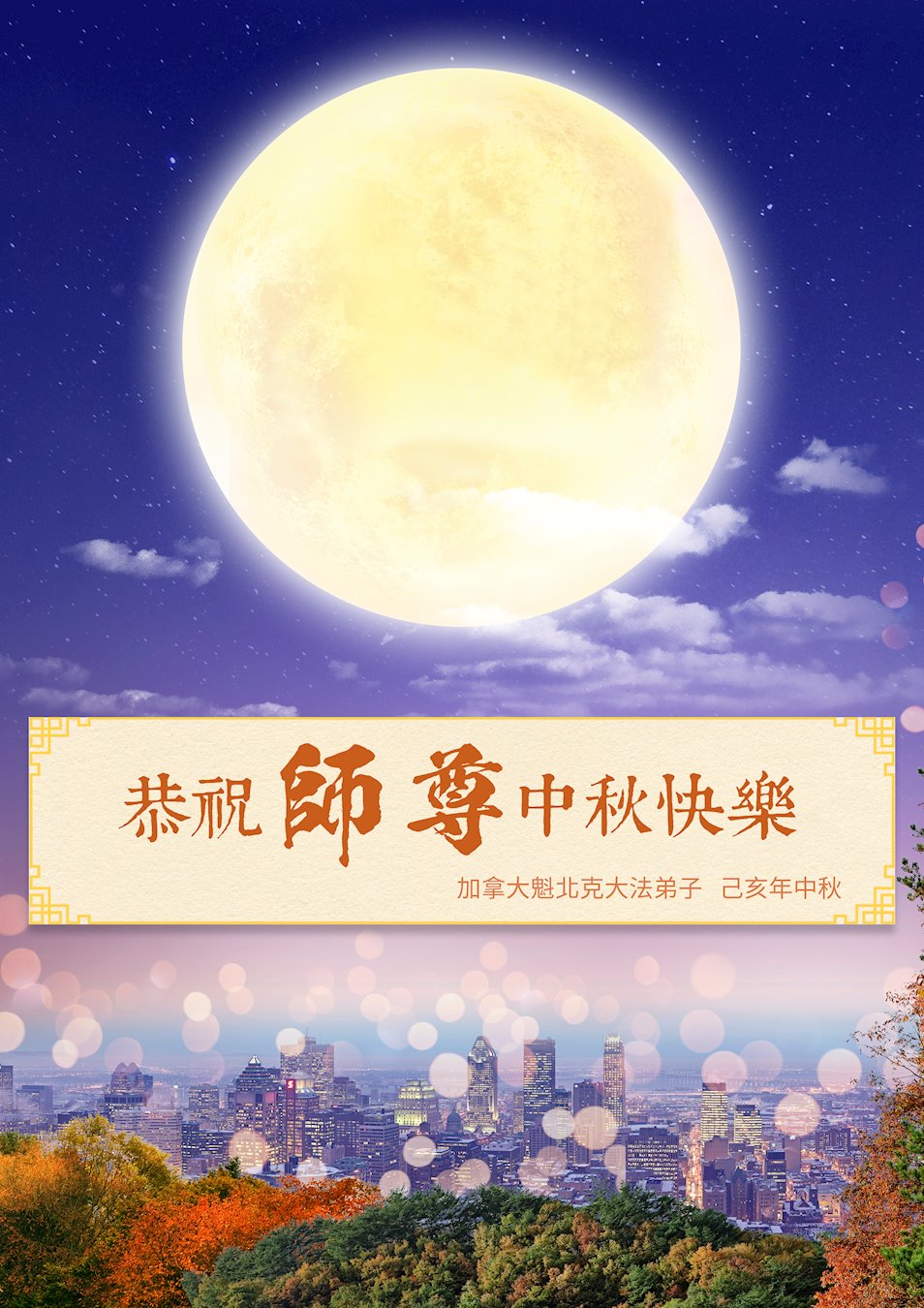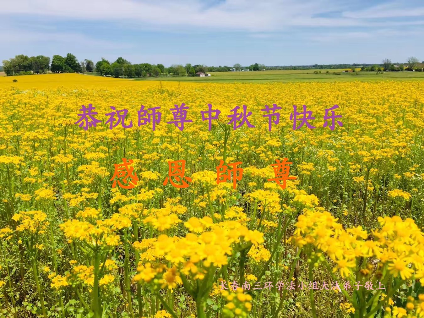 您好!今年的中秋佳节到来了。法国大法弟子在这个敬谢神恩的传统节日里向师尊问好,无限感恩师父的慈悲苦度,恭祝慈悲伟大的师父中秋快乐!