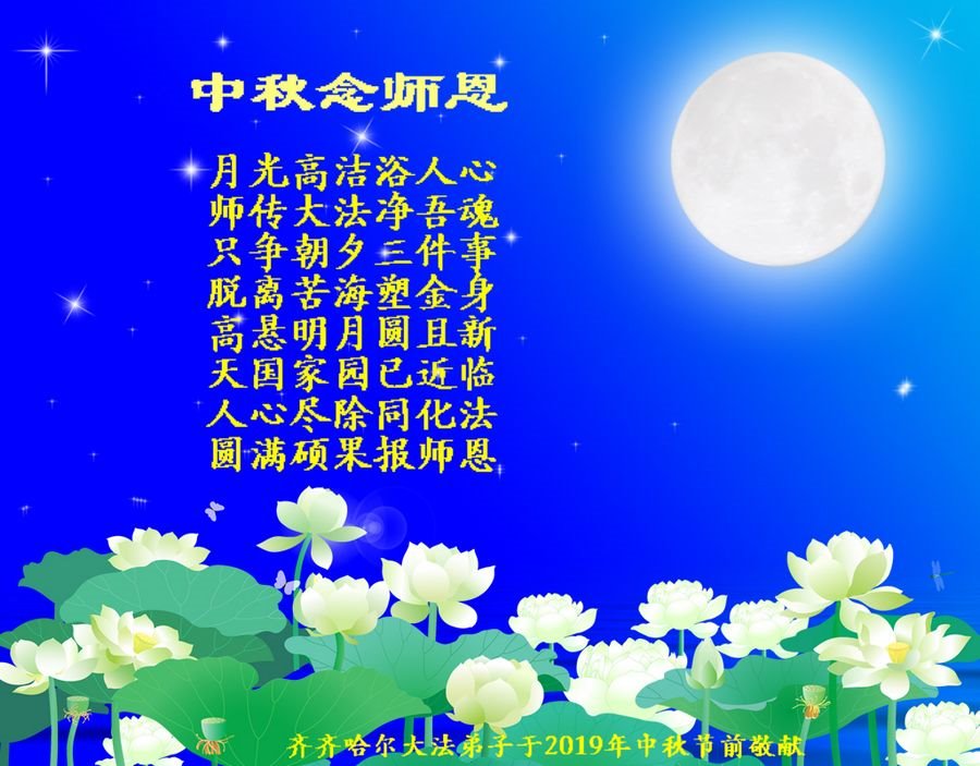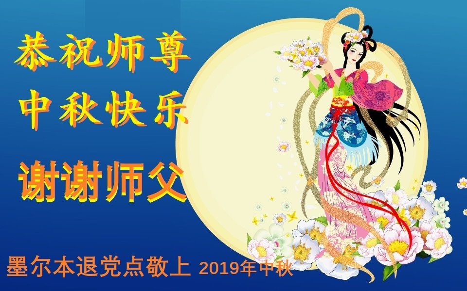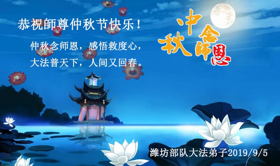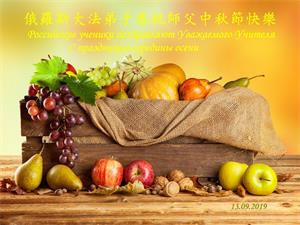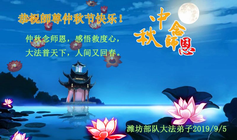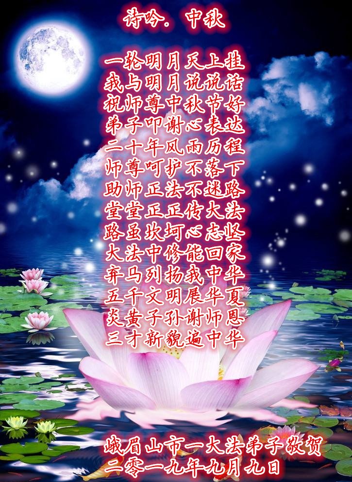 莫斯科大法弟子2019年中秋节向慈悲伟大的师尊问好!感谢师尊慈悲救度!师尊您辛苦了!莫斯科大法弟子叩谢师尊慈悲救度,值此佳节,更加想念师尊,恭祝师尊中秋快乐!中秋朗月松间照,感恩师尊心操劳,为救众生免煎熬,慈悲普度得再造。