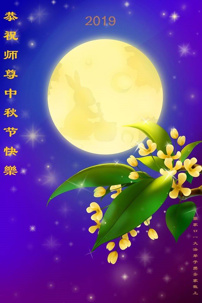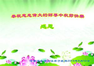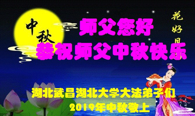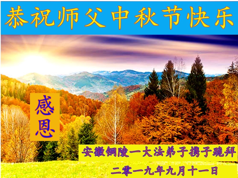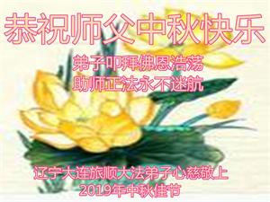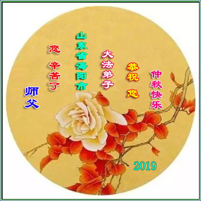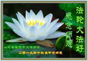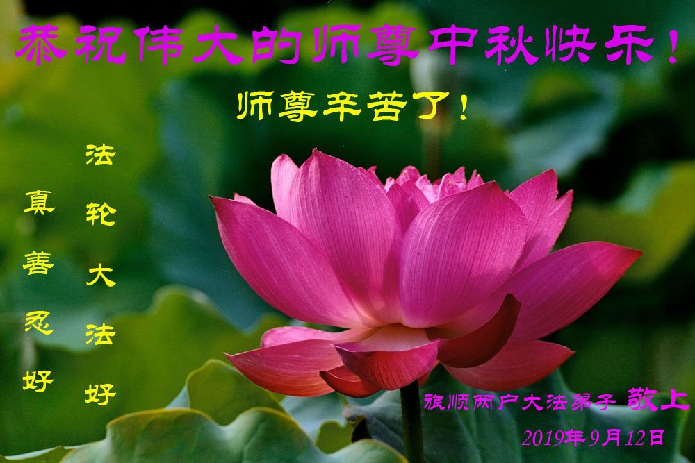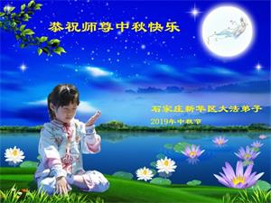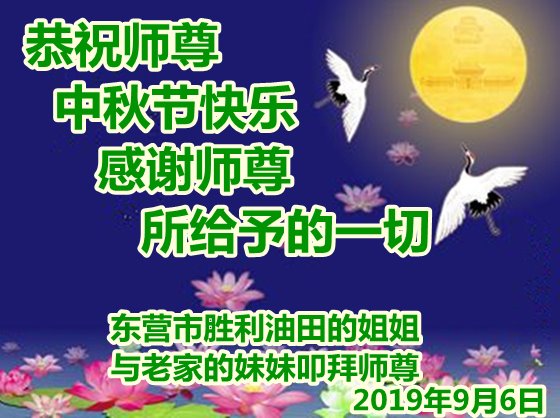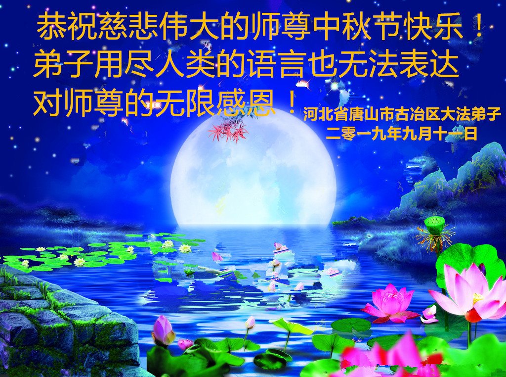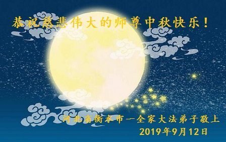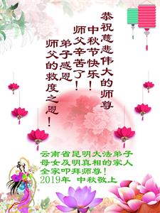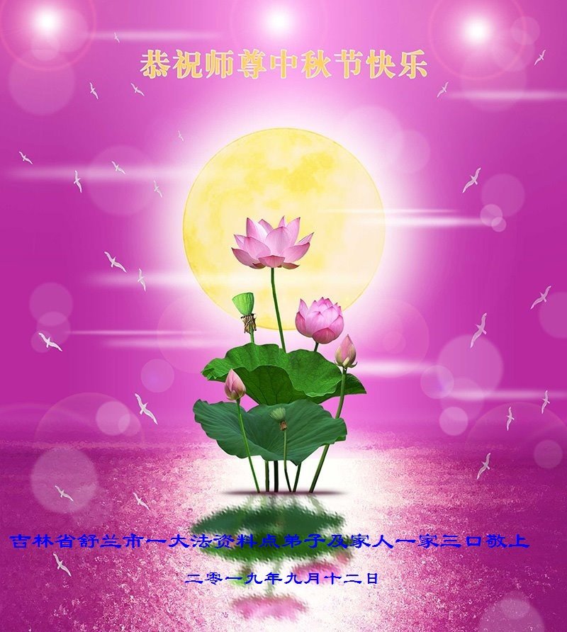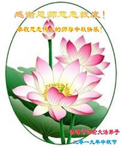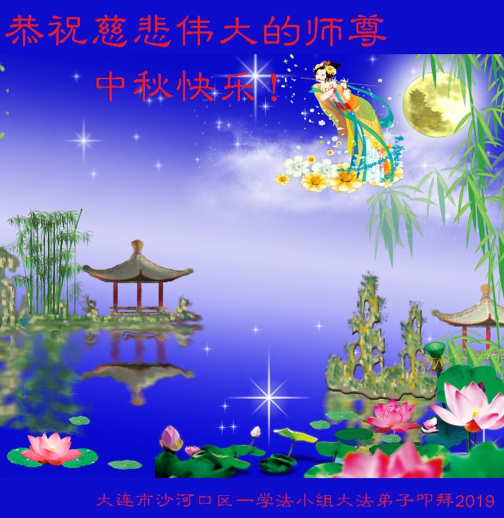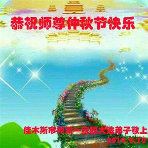 您好!迎来二零一九年中秋月圆,弟子感恩师父给予的作为大法弟子的荣耀和福气!在修炼中走过的艰难岁月,一刻也没有离开过师父的慈悲保护!弟子得到最好的,一切都是源自于慈悲伟大的师父!