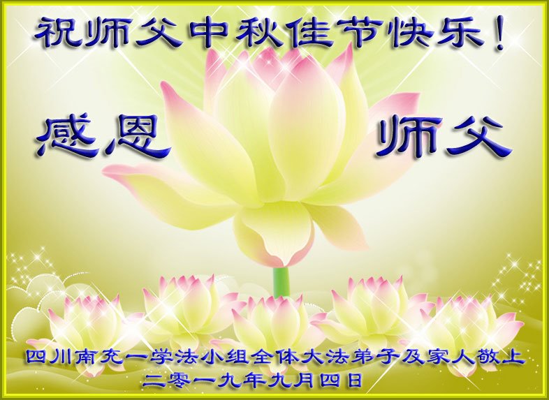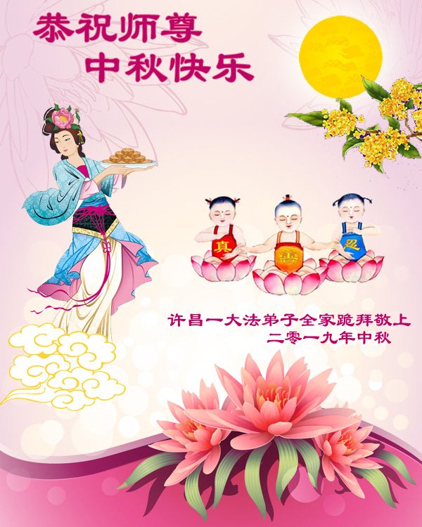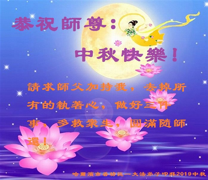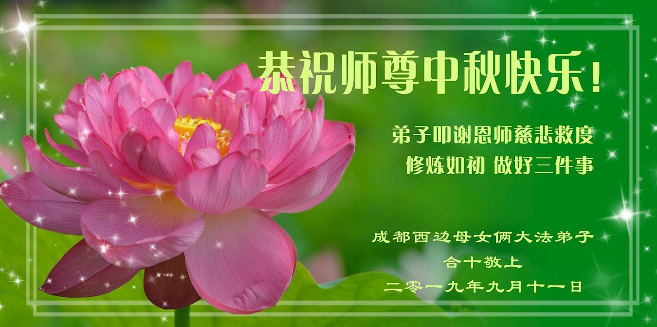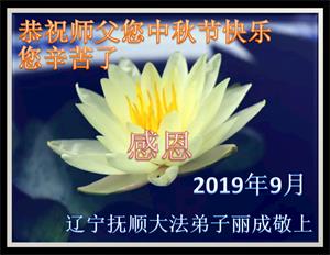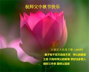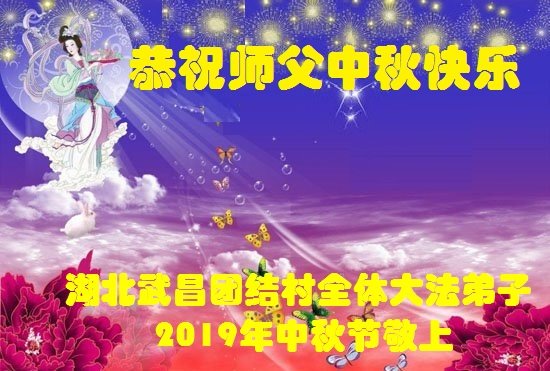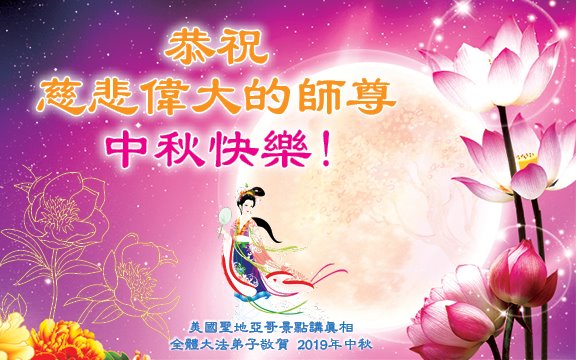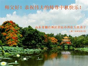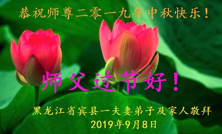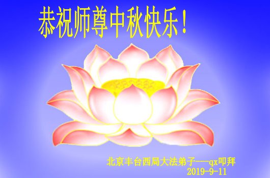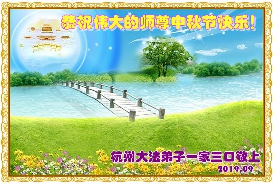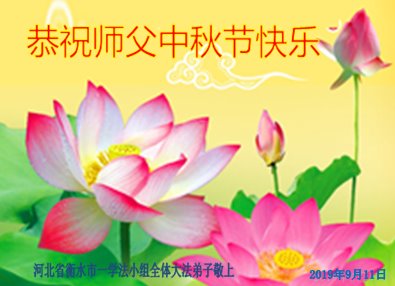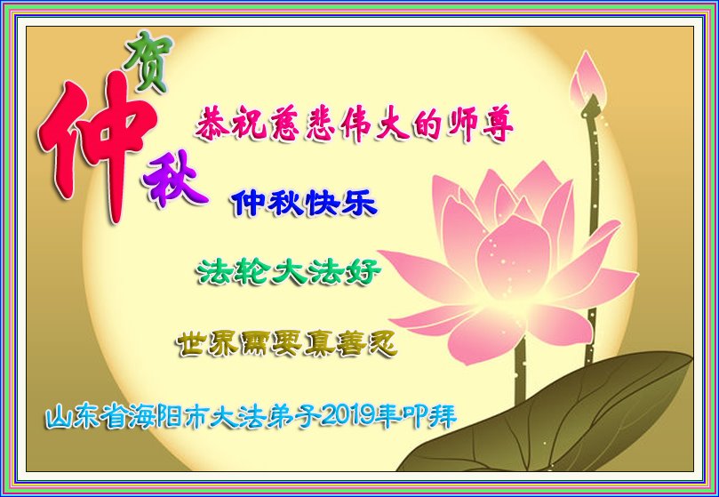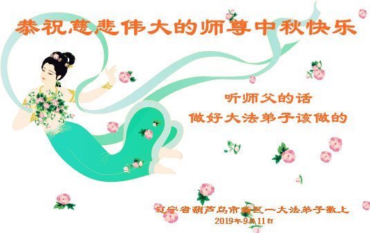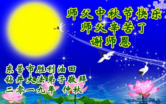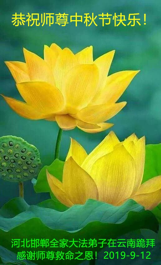 您好!迎来二零一九年中秋月圆,弟子感恩师父给予的作为大法弟子的荣耀和福气!在修炼中走过的艰难岁月,一刻也没有离开过师父的慈悲保护!弟子得到最好的,一切都是源自于慈悲伟大的师父!