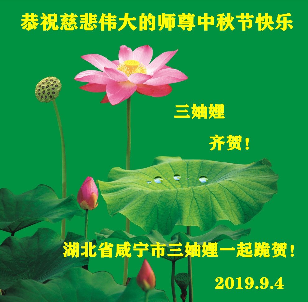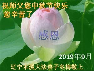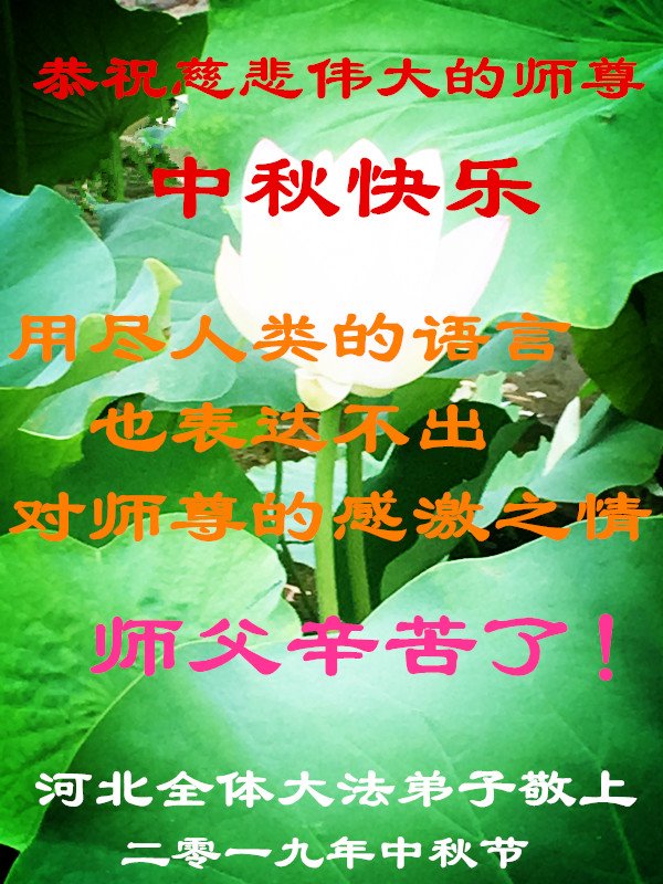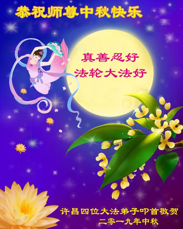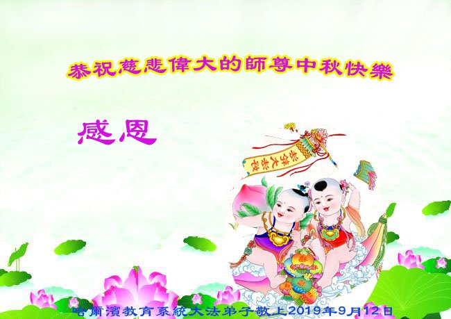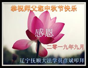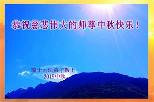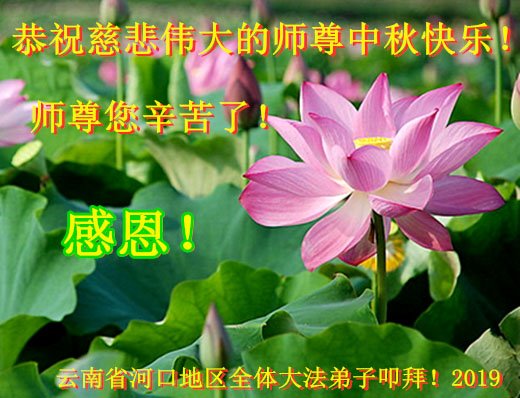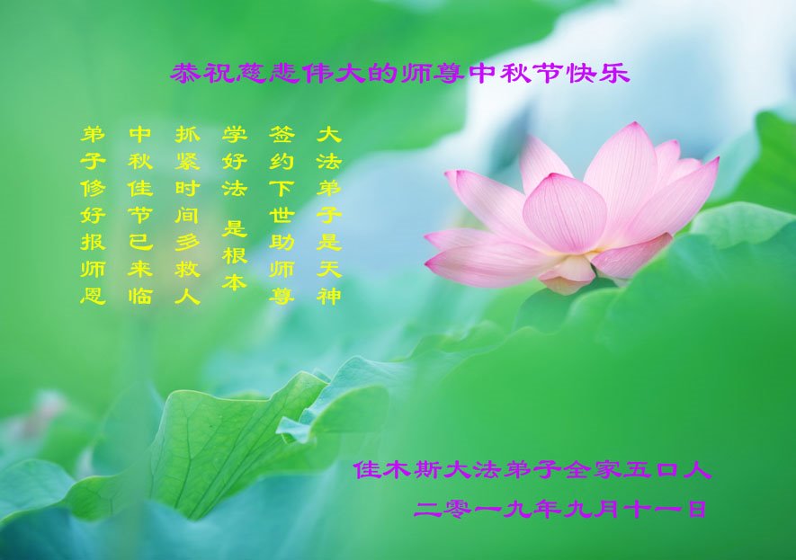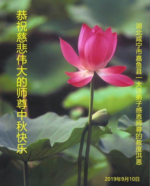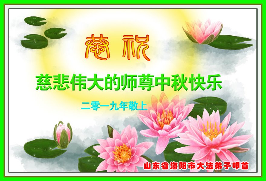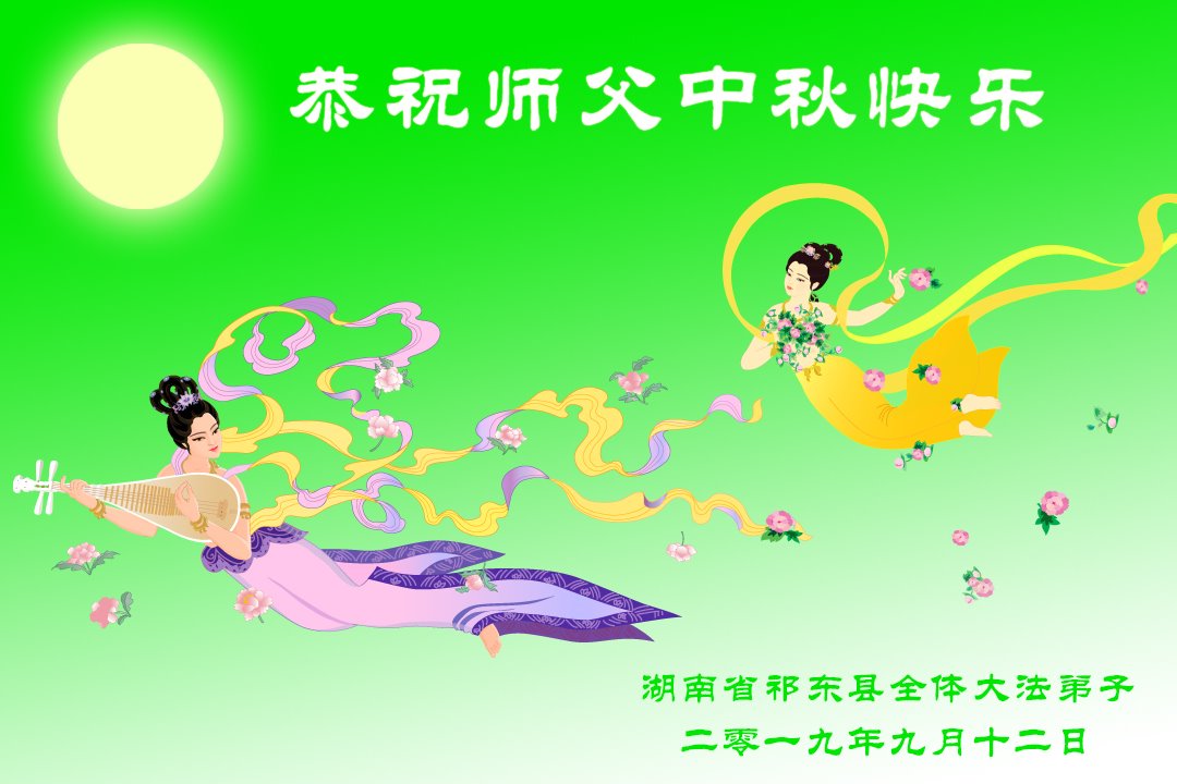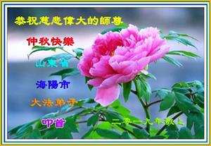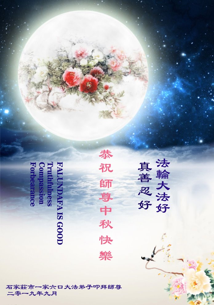 您好!迎来二零一九年中秋月圆,弟子感恩师父给予的作为大法弟子的荣耀和福气!在修炼中走过的艰难岁月,一刻也没有离开过师父的慈悲保护!弟子得到最好的,一切都是源自于慈悲伟大的师父!