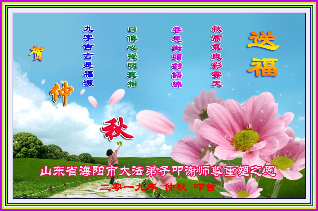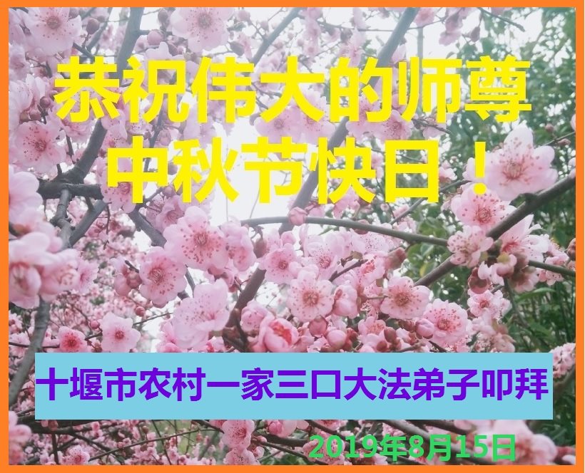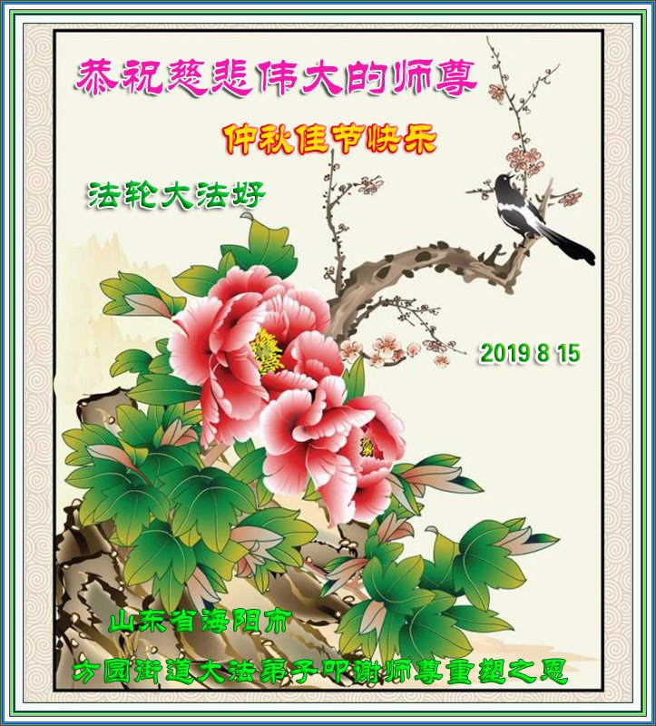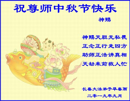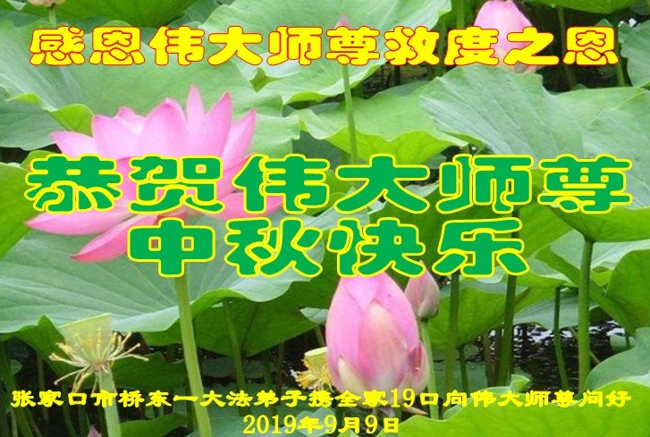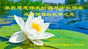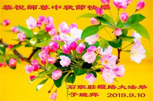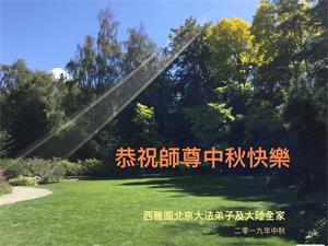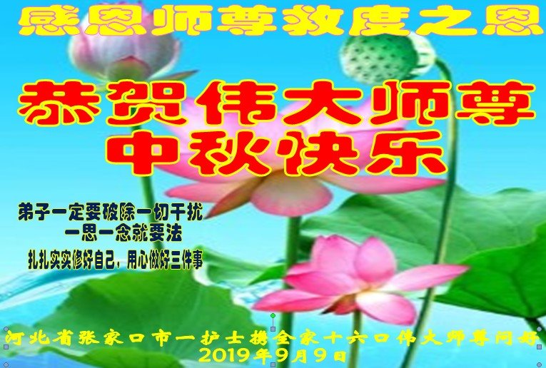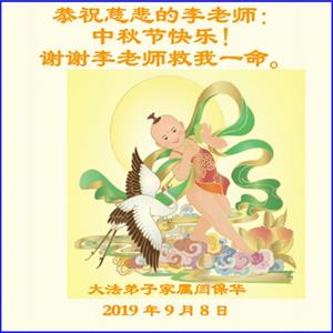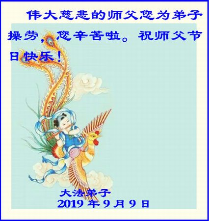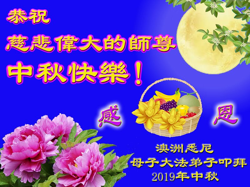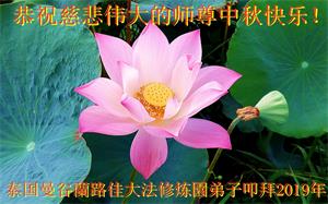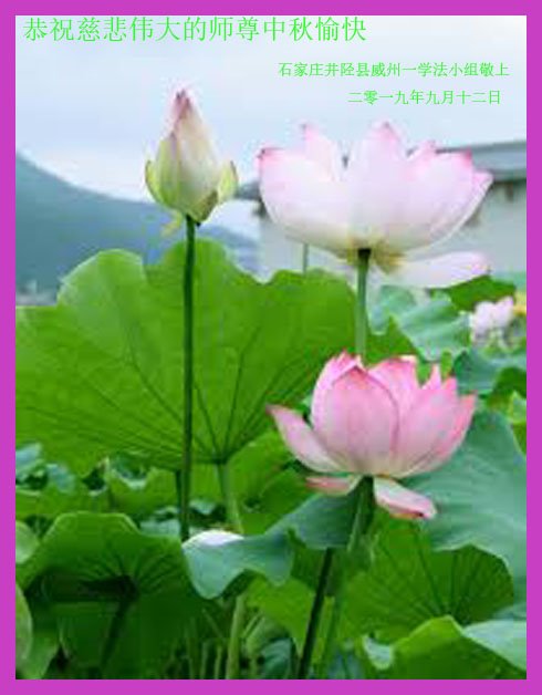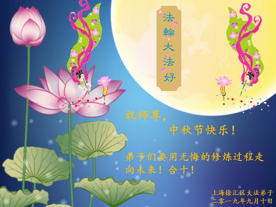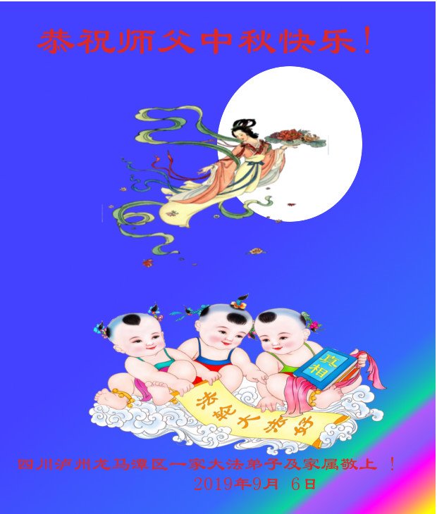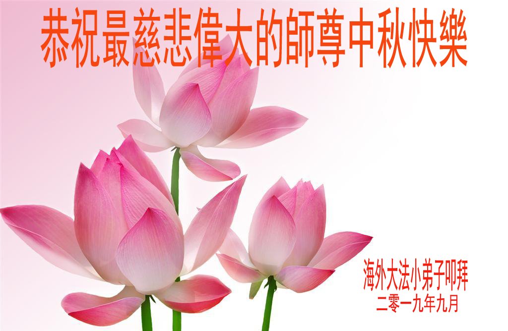 您好!迎来二零一九年中秋月圆,弟子感恩师父给予的作为大法弟子的荣耀和福气!在修炼中走过的艰难岁月,一刻也没有离开过师父的慈悲保护!弟子得到最好的,一切都是源自于慈悲伟大的师父!
