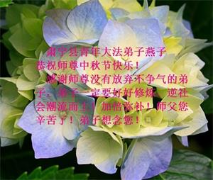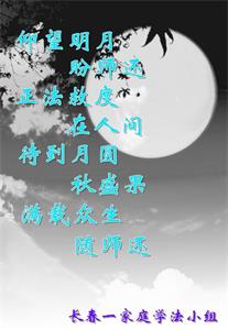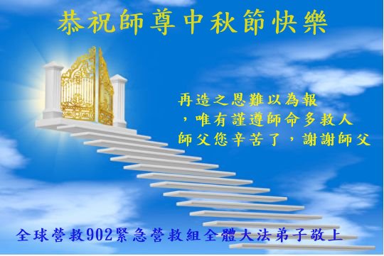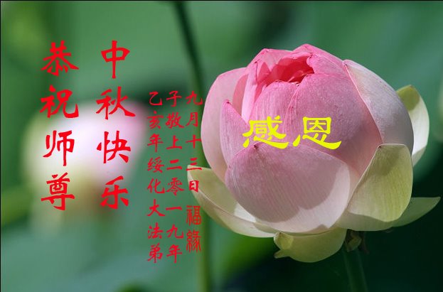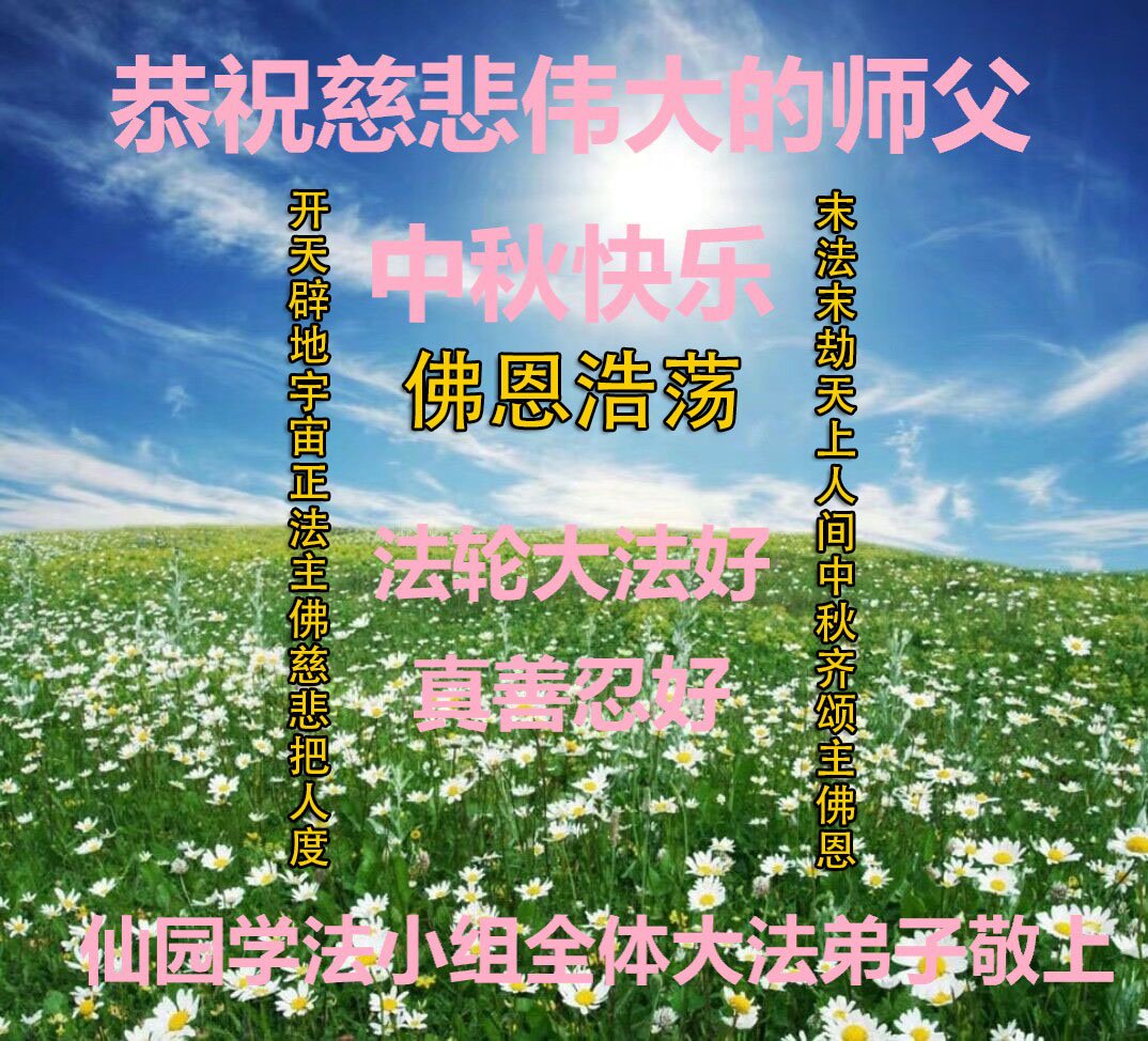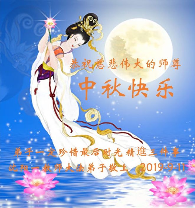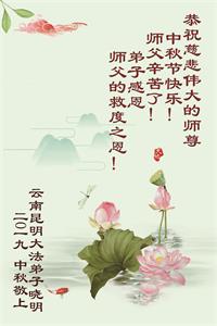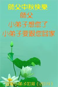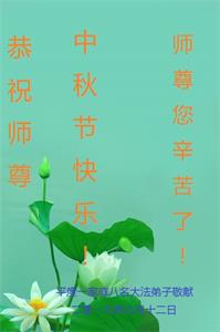 在此,弟子真诚的跪谢师父的慈悲苦度,在最后的时间里,弟子一定时刻谨记师父的循循教诲,以法为师,多学法,正念正行的做好师父安排的三件事,救度更多的众生,完成史前誓约!最后祝师父中秋节快乐!再次谢谢师父的慈悲救度!
