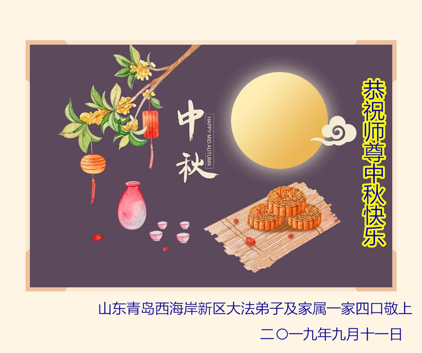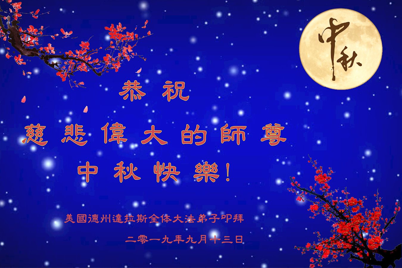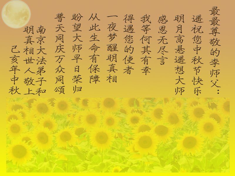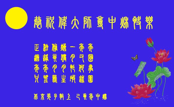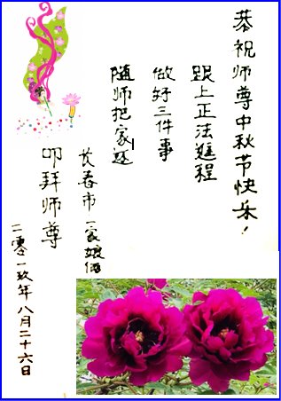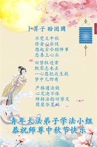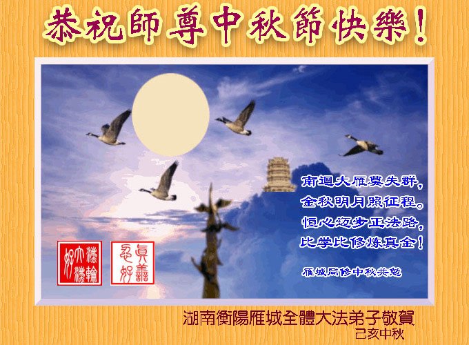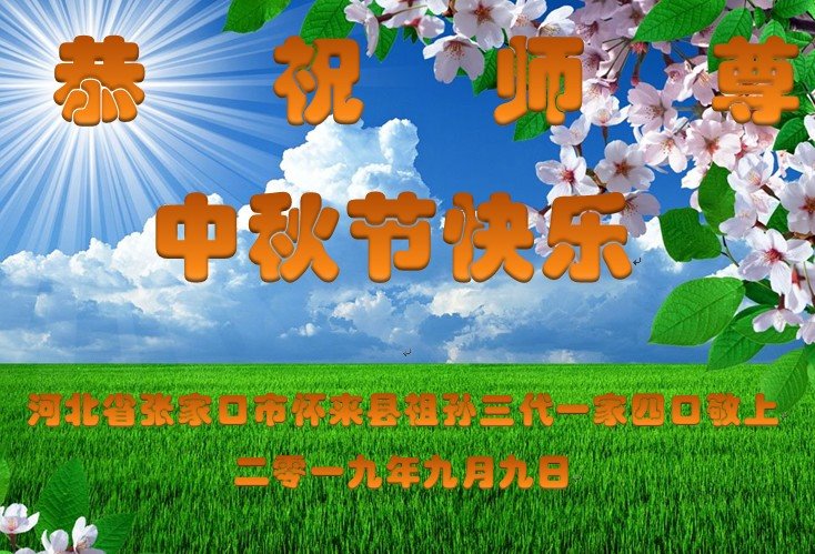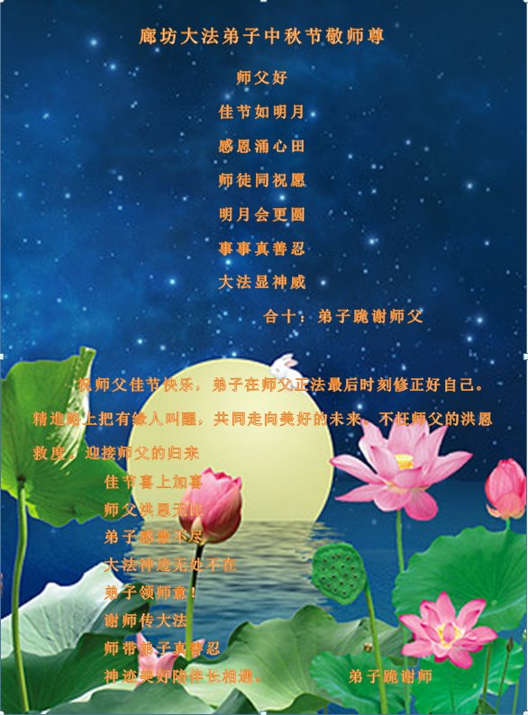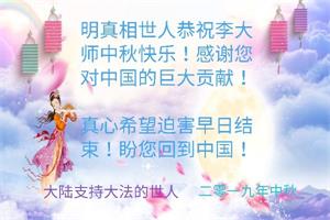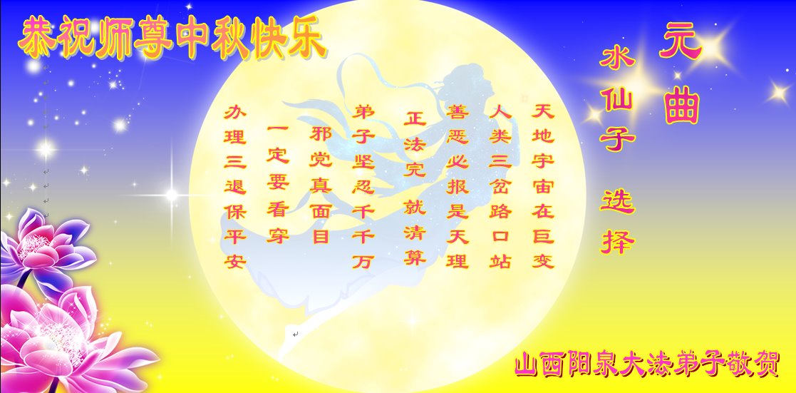 中国大陆各地大法弟子恭祝师尊中秋节快乐!