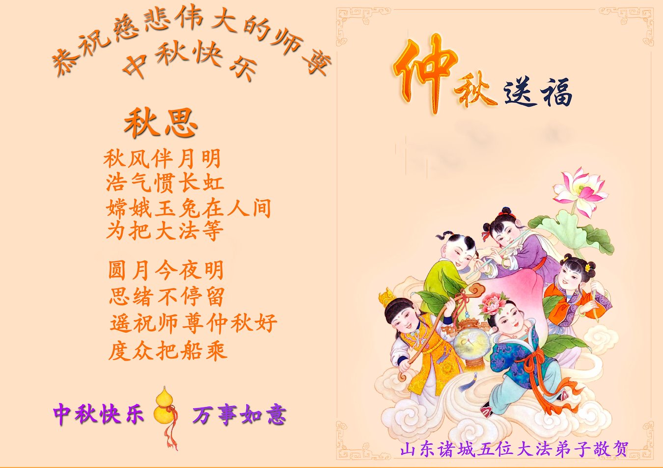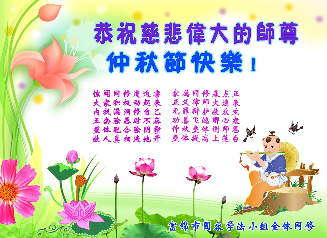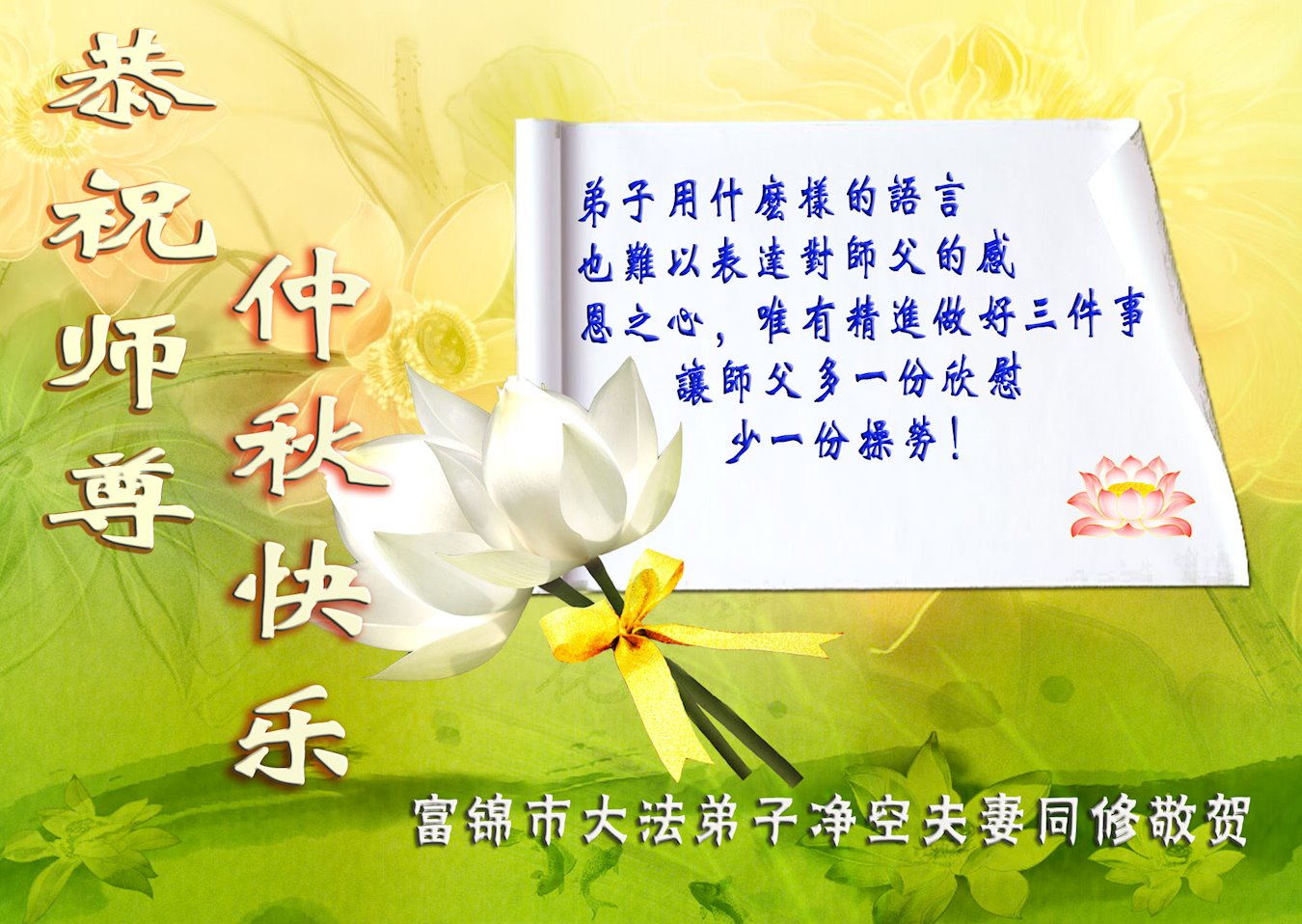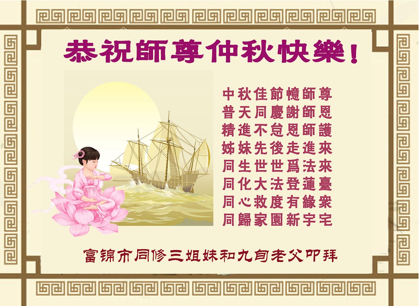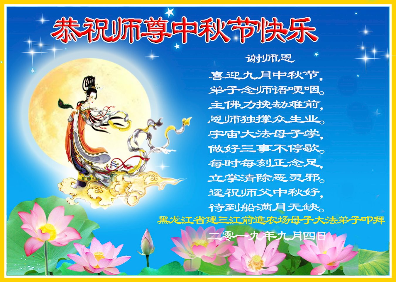 中国大陆各地大法弟子恭祝师尊中秋节快乐!
