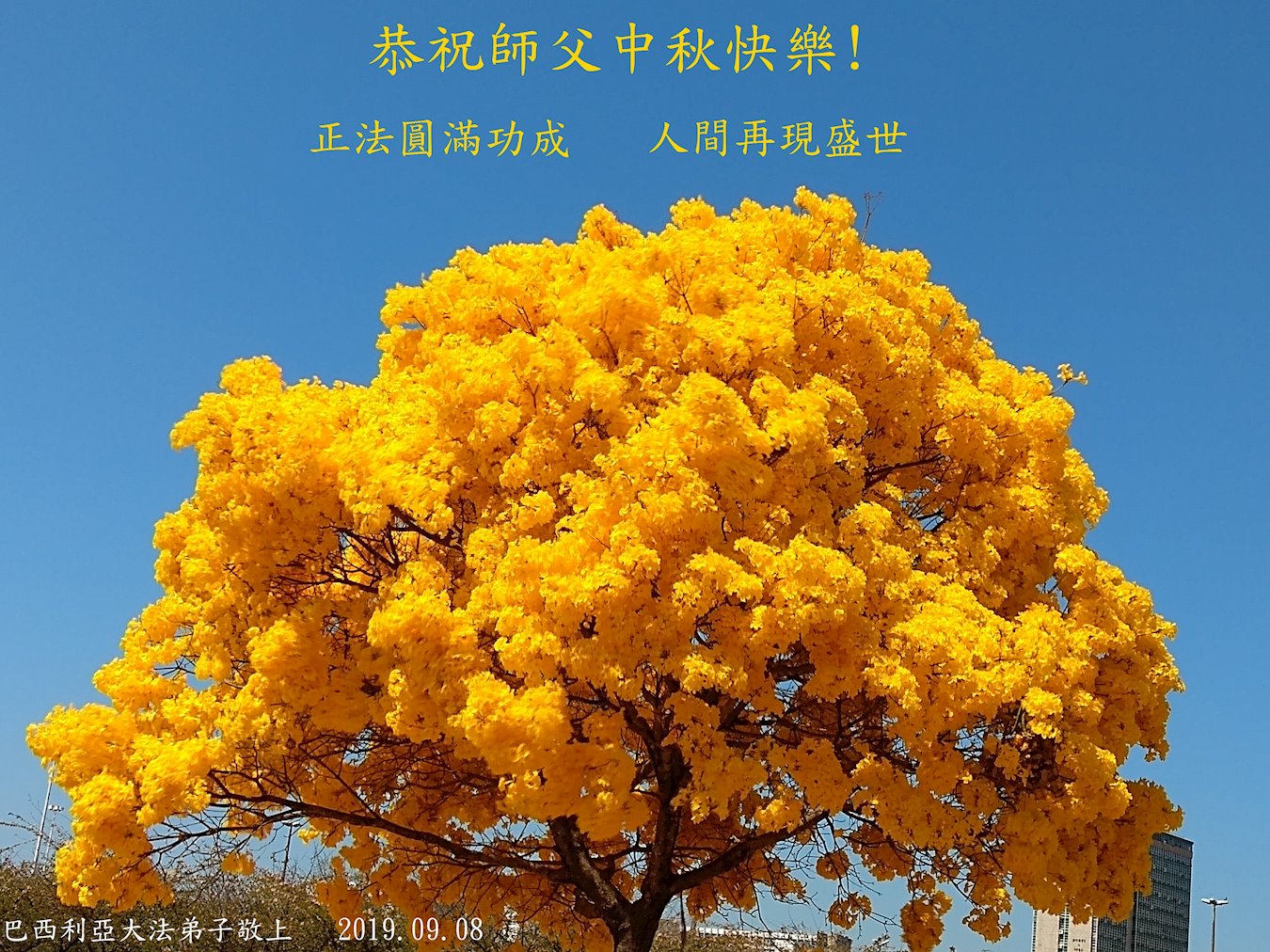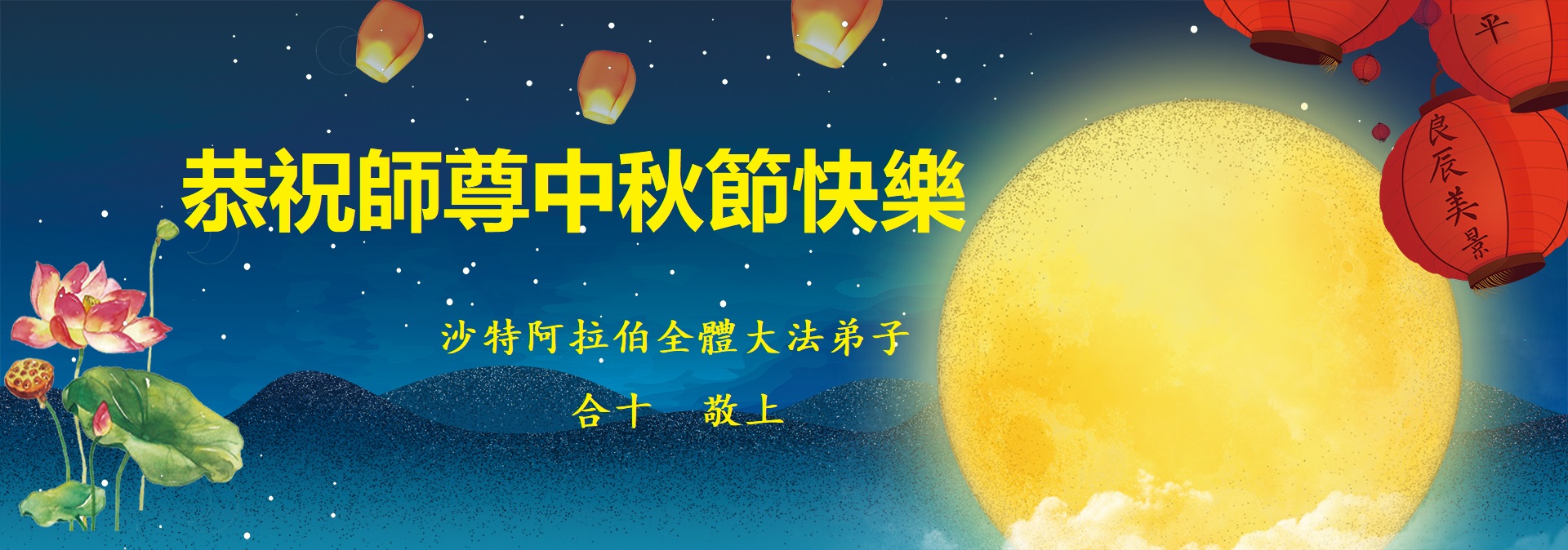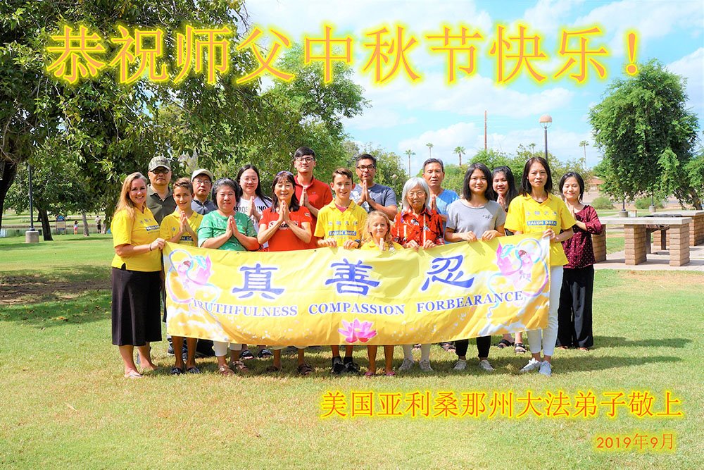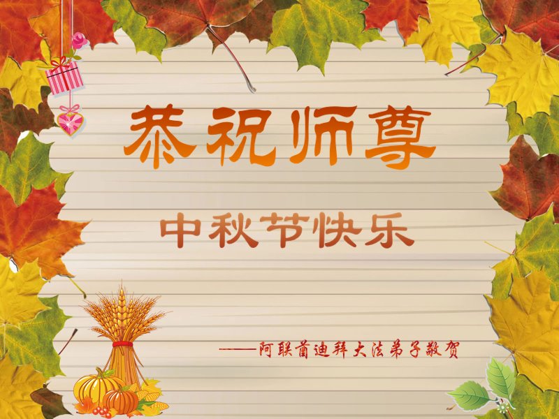 阿联酋迪拜大法弟子向我们最伟大的师尊献以最诚挚的中秋问候!师父您辛苦了!