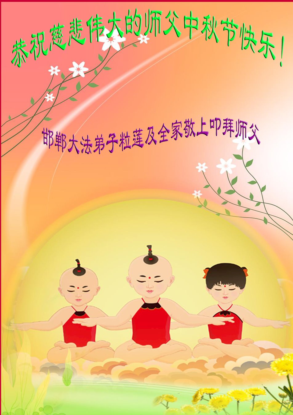 慈悲伟大的师尊您好!恭祝师尊中秋节快乐!为了弟子们您操碎了心,师尊,感谢师尊苦心救度!谢谢您!您辛苦了!弟子叩首谢师恩!