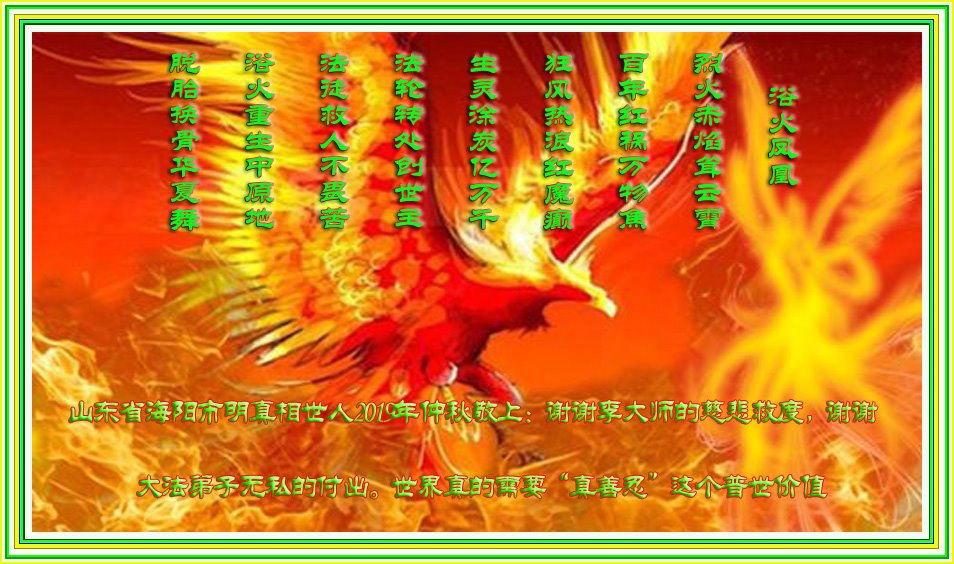 我们要正念正行,兑现承诺,走正师父安排的修炼之路。在此,也替那些在讲真相中得救,曾言感恩的世人敬奉上真诚的感恩和祝福,惟愿师尊笑!