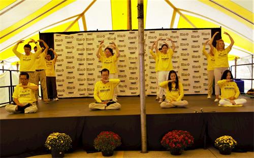 ![]() 图2~3:法轮功团体第三次应邀参加了特洛伊市家庭狂欢节中的“国际日”帐篷内的表演活动 |