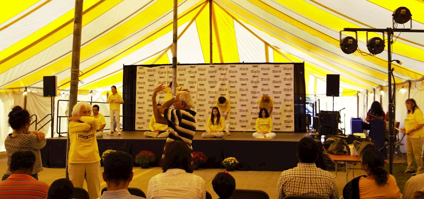 在功法演示还没有正式开始时,学员们先进行了排练。一位印度裔的老先生一下子就被深深地吸引住了,他立即坐在地上,学着单盘打坐。这位退休的特洛伊市居民叫肯·肯加勒 (Ken Kenjale),肯加勒先生在采访中说:“他们(法轮功学员)看起来很平和、宁静。我这是第一次学炼,觉得有些紧张。”后来有学员现场教肯加勒先生炼功。肯加勒先生的太太,米娜·肯加勒 (Meena Kenjale)女士也跟着一起学,学过后她说:“我感觉很好。感到心平气和,非常放松。”