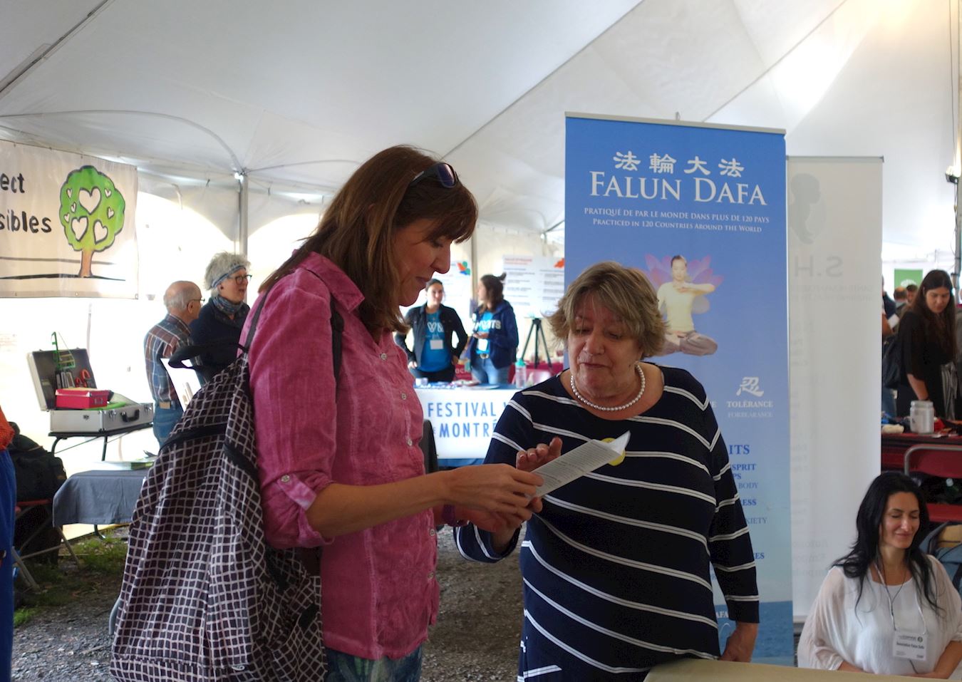 一位在蒙特利尔儿童医院工作的女士,在听了法轮大法的介绍后,感到很受启发,因为她的工作是负责组织医院员工的健康活动,她说把法轮大法带给医生和其他员工将会是有益的事情。