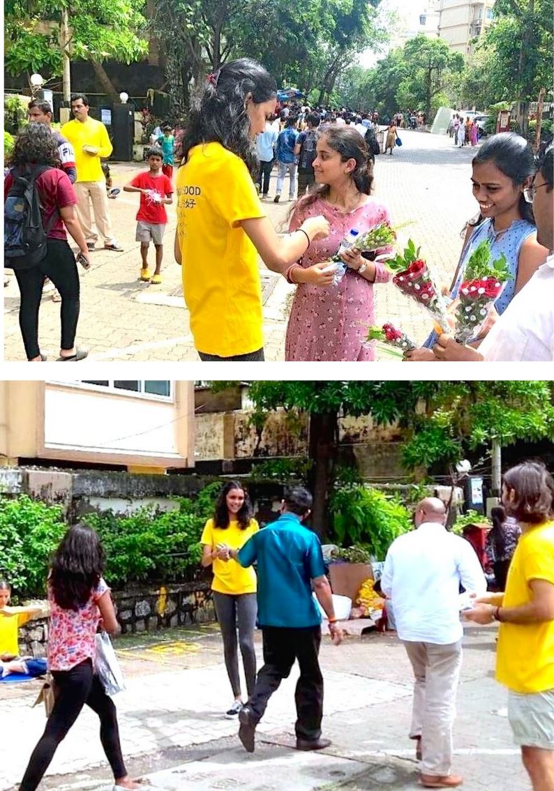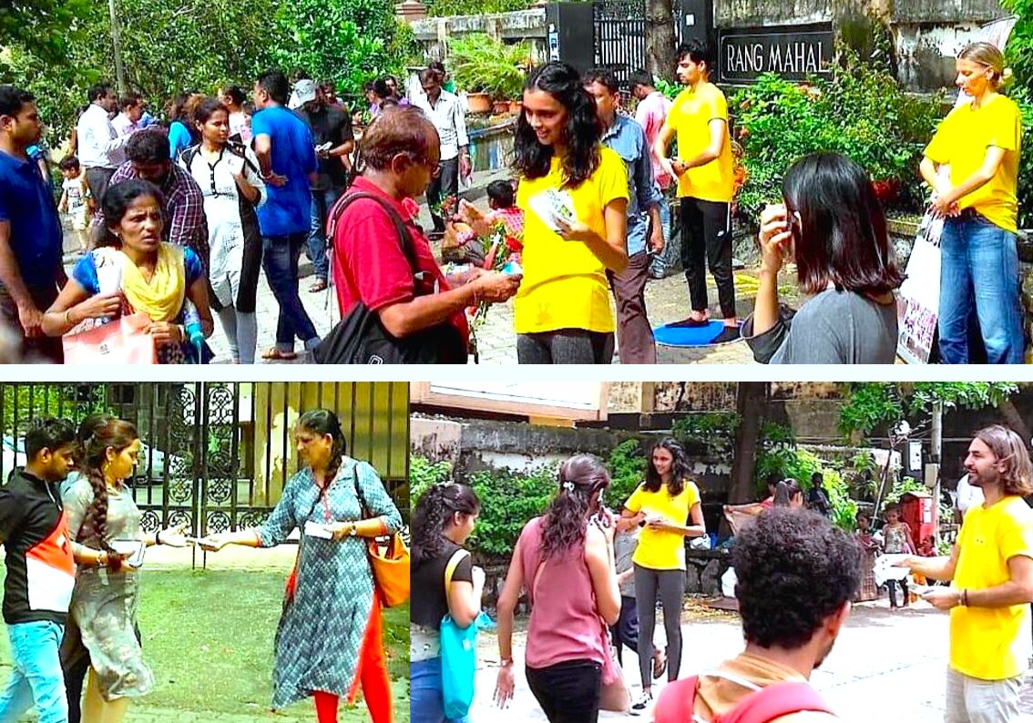 ![]() 图3:孟买学员在为前来咨询的人们讲真相,派发真相传单 |