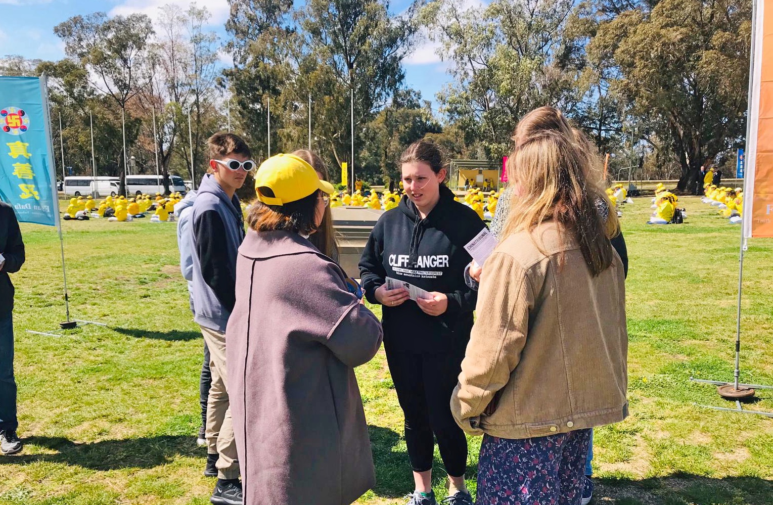 两天来,法轮功学员们举行了系列活动,包括:在首都议会大厦前举行集体炼功和集会,在市中心设立信息展位,走访政府部门及非政府组织机构,在市区主要街道展示真相横幅并向市民讲述反迫害真相,在电影院举行《求救信》在澳洲的首映式,拜访参众两院联邦议员,以及在议会大厦内召开有关活体摘除器官的研讨会等。