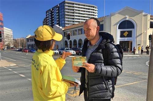 图15~16:二零一九年九月十七日和十八日两天,法轮功学员在堪培拉市中心设立真相信息展位,向民众介绍法轮功及反迫害真相。 |
