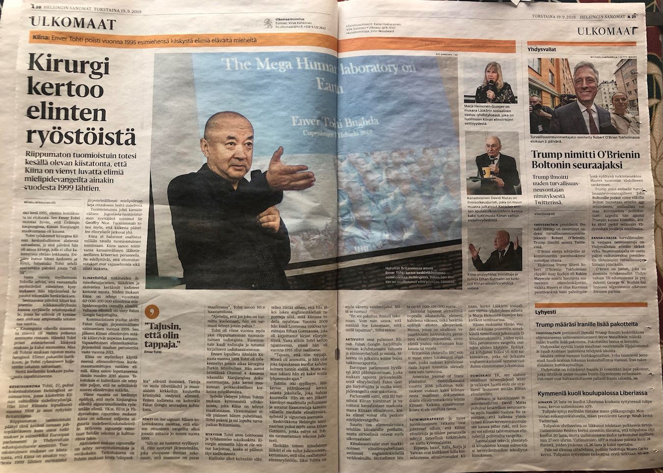 ![]() 图2:《赫尔辛基日报》纸媒版关于“中共掠夺器官研讨会”的大篇幅报道 |