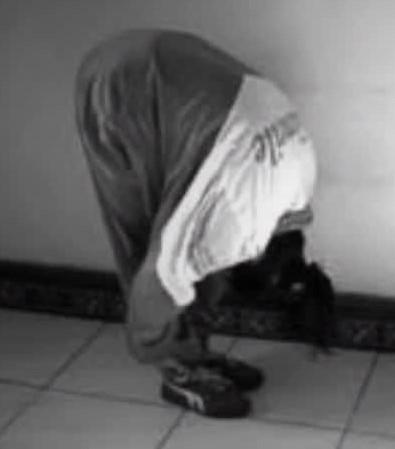![]() 中共酷刑示意图: 180°弯腰站立 |