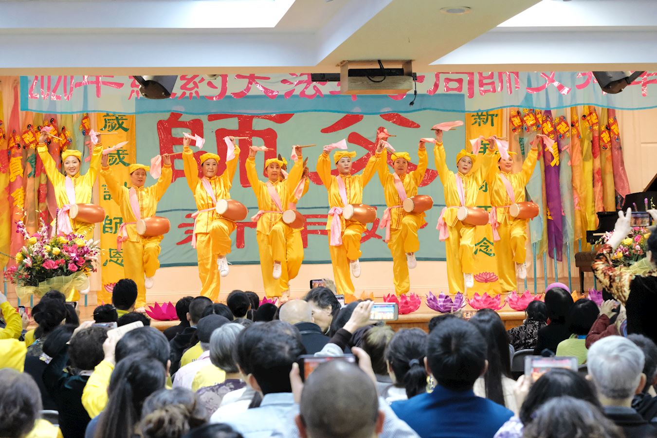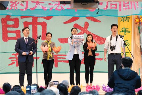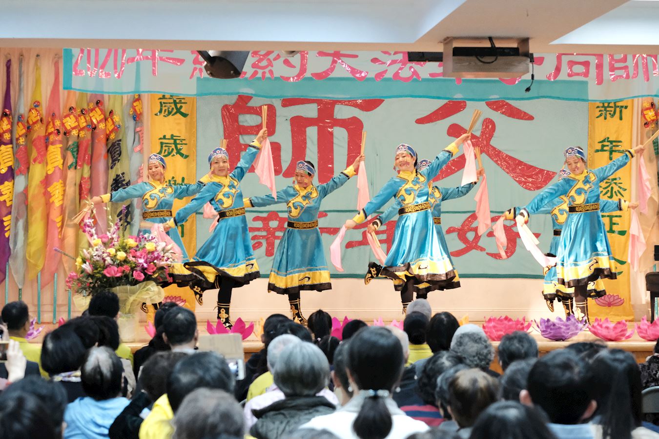 学员们身着节日盛装,喜气洋洋,逾六百人济济一堂。舞台上“2020年纽约大法弟子向师父拜年”、“新年添正念岁岁谢师恩”条幅赫然醒目。舞蹈、合唱、独唱、琵琶、二胡、长笛、钢琴、小提琴、腰鼓表演、武术表演、书法表演等精彩纷呈,场面祥和,很多学员流下感动的泪水。最后全体学员双手合十,齐颂“恭祝师父新年好!”“法轮大法好!”“真善忍好!”