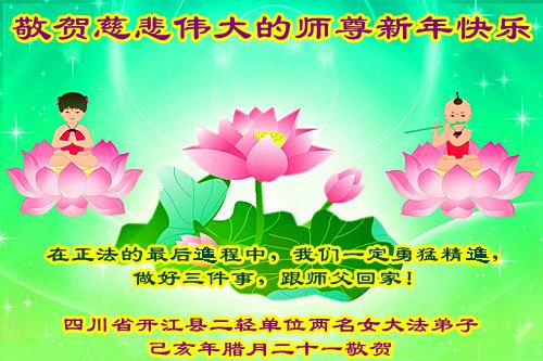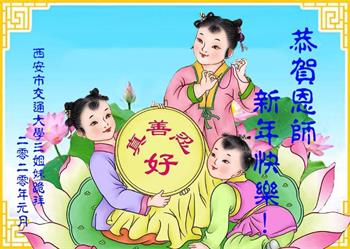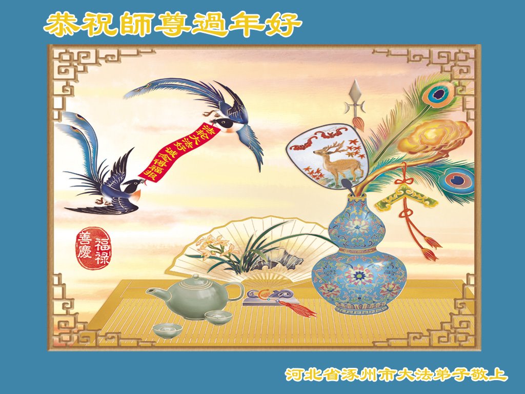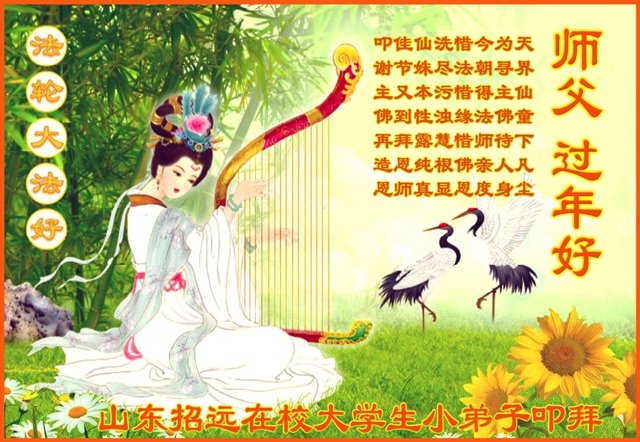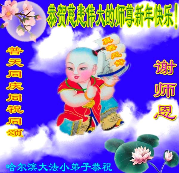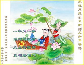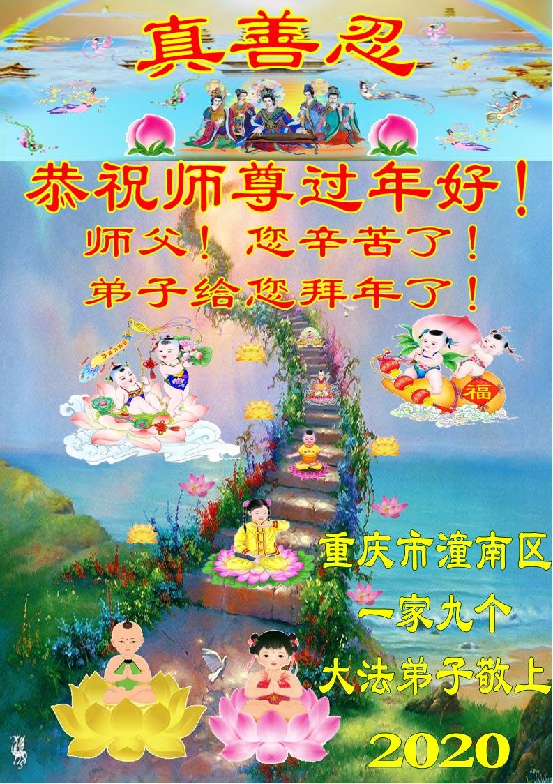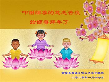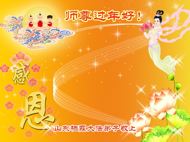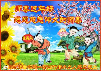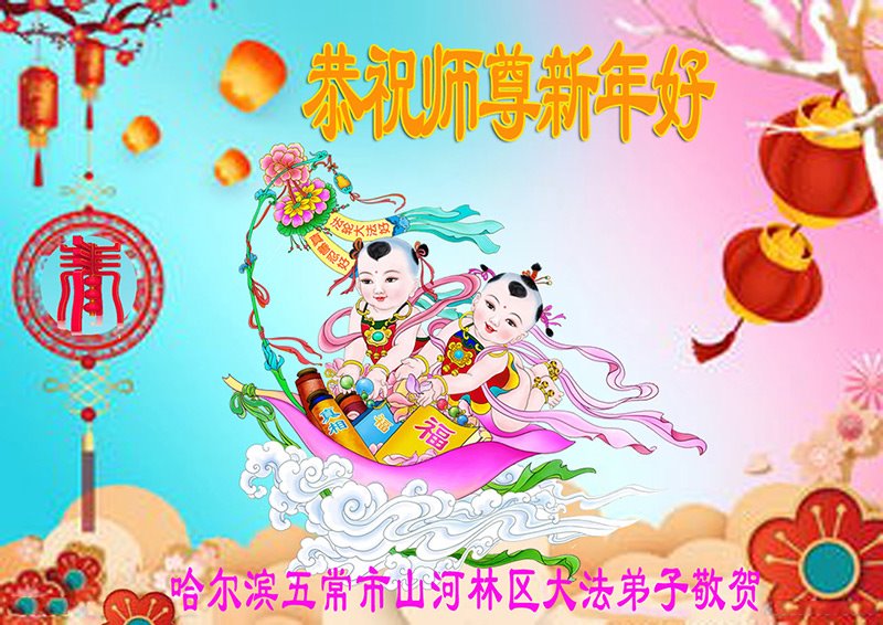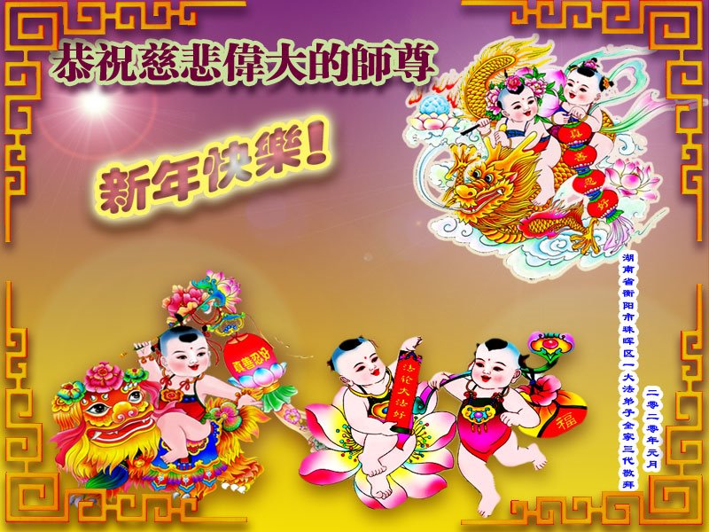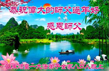 在中国新年传统佳节之际,一家家老幼大法弟子以一封封贺信、一张张贺卡,汇作无尽的感恩:感谢师尊洪恩浩荡!恭祝师尊新年快乐!