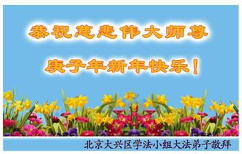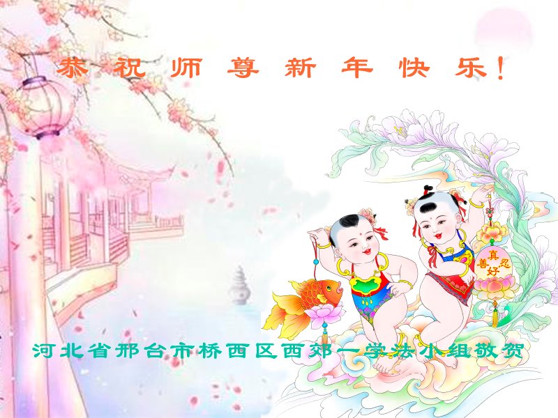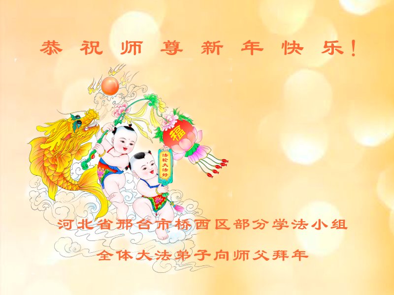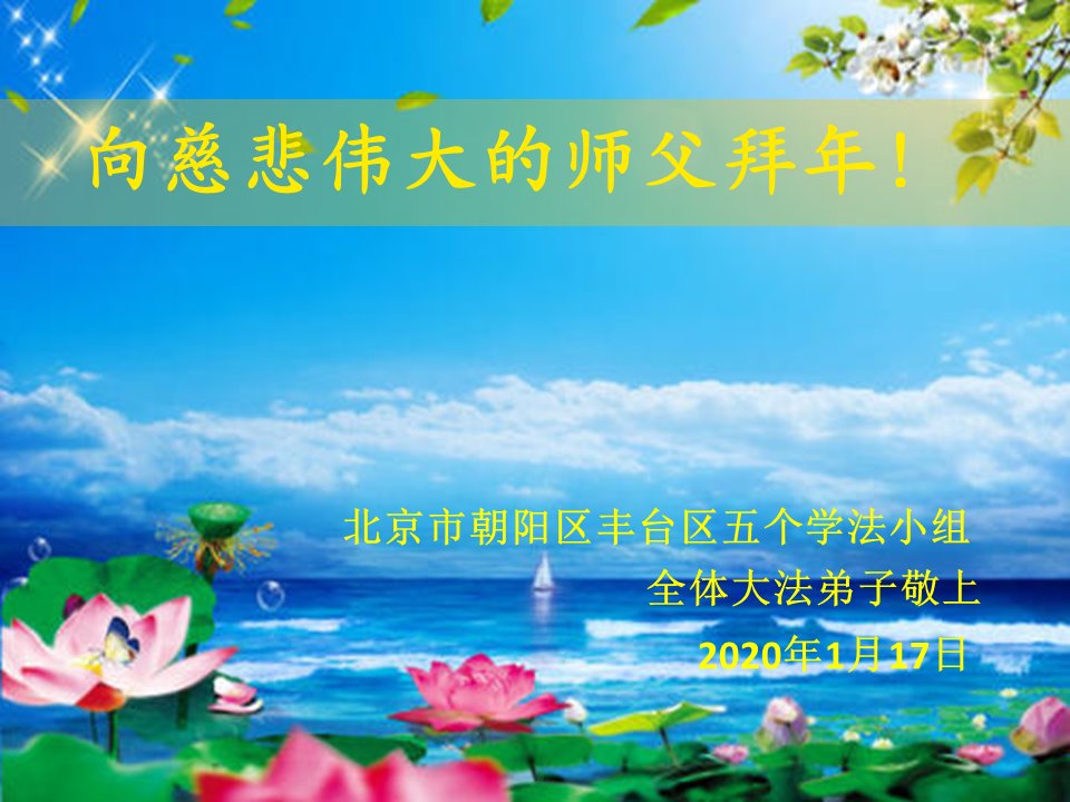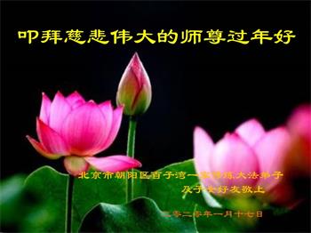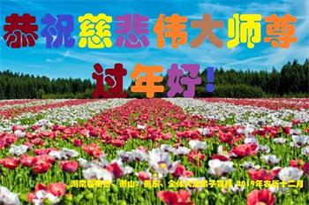 在中国传统新年来临之际,我们海淀区铁路系统大法弟子并代表家人同修及明真相的世人给慈悲伟大的师尊拜年!师尊过年好!