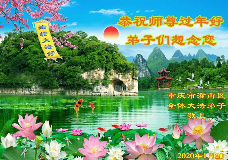 重庆市教育系统全体大法弟子恭祝慈悲伟大的师父过年好!弟子们给师父拜年!叩谢师父的慈悲救度!师父辛苦了!