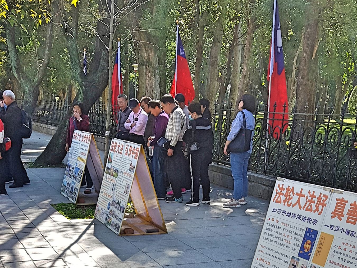 一位中年知识份子在经过展板时,主动向学员询问最近陆客到访情况,还说:“我知道,有陆客的地方、就有你们法轮功的大板子,希望陆客他们出国时能看到这些事实讯息……”“多年以前我觉得你们整天抗议、在搞政治,但经过长时间观察,发现你们在各旅游景点实实在在的做,这么多年了,不搞排场、不搞奢华、不做表面,是真信仰,这才让我对你们改观了,法轮功是真信仰!”