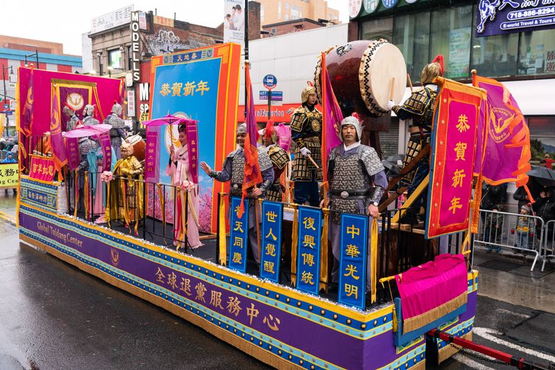 除了庆祝中国新年的传统节目,如花车、舞龙舞狮、腰鼓队等方阵外,法轮功学员还准备了全球.退:党!服务中心以及纽约市各景点讲真相学员的游行队伍,他们要把重要的信息告诉中国民众。