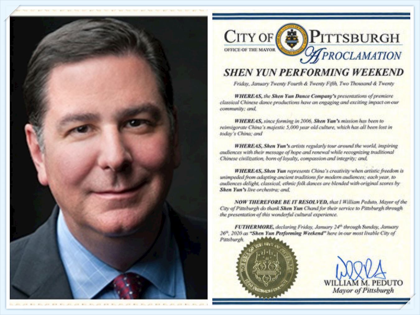 为此,我,匹兹堡市市长William Peduto,真诚感谢神韵艺术团通过演出为匹兹堡带来这辉煌的文化。