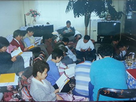 ![]() 图3:王大姐在家里组建了墨尔本的第一个学法点。图为二十多年前的一次集体学法。 |