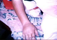 ![]() 阙发芝临终前所照照片 | ![]() 全身浮肿 |