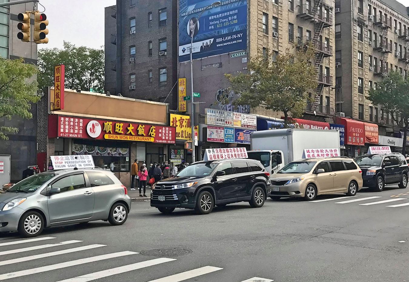 ![]() 图7~10:“解体中共”真相车队途径法拉盛主要街道 |