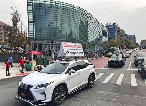 全球.退:党!服务中心希望用这种车载真相展板形式触及的到更多的人。全球.退:党!服务中心主席易容说:“因为我们是动态的,我们可以随时移动。尤其在曼哈顿、时代广场、42街这些地方,传给纽约人。瘟疫期间大家也不愿意近距离接触,真相车走一走大家也看到,也很自然。非常容易接受。”