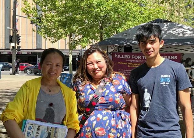 玛丽·阿维安娜(Mary Avina)是越南移民的后裔,经过法轮功真相点,认出去年参加阿德莱德港圣诞游行的法轮功学员,主动过来感谢法轮功学员多年来坚持不懈传播真相。