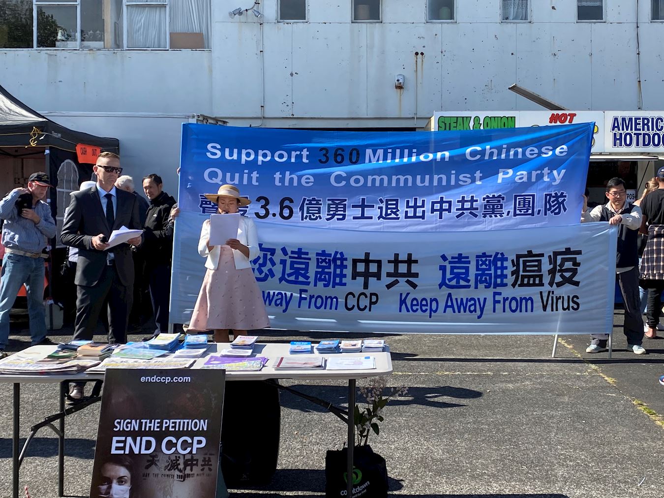 集会开始,主持人介绍到:“自从中共执政以来,数以亿计的人一直遭受着无休止的欺骗和残酷对待。中共掠夺了中国的这片古老土地,毁坏了五千年的神传文化和维系正常社会秩序的道德底线。如今其恐怖活动已蔓延至全球,影响到所有人。我们敦促新西兰人站出来反对中共在新西兰的渗透势力。如果中国共产党(CCP)不撒谎,新冠病毒本可以避免。现在是我们所有人站出来拒绝其邪恶并结束中国共产党的时候了!”