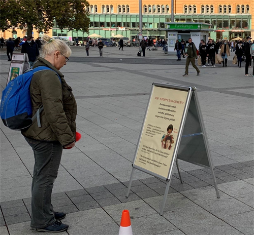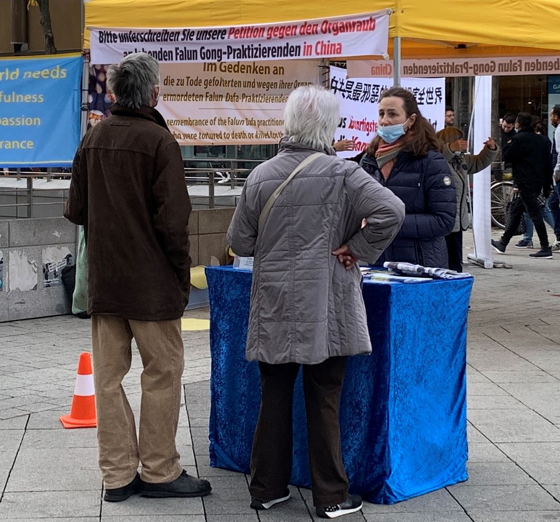 二十岁的妮可·海尔布格(Niko Heilburger)在反对中共活摘器官的请愿书上签名后,她向学员表示,希望活摘器官的事情可以被终止,并且她希望德国政府支持法轮功学员反迫害。她表示中国与德国在经济上关系密切,德国可以借助在与中国(中共)商谈经济时,与中国(中共)谈论这一迫害人权的话题。妮可还表示,学员炼功的场景使她感到内心平静。