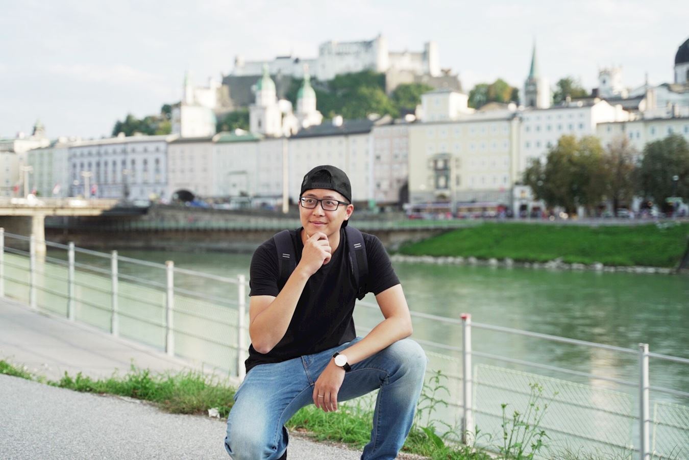 ![]() 图:樊堂宇在欧洲游学期间,背景为捷克查理大桥旁边的河岸。 |