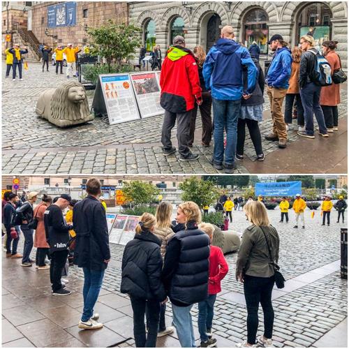 十月三日周六中午,讲真相活动刚刚开始,在瑞典出生的第二代移民安德烈亚斯(Andreas)就站在了真相展板前,这位年轻人被展板上的法轮图形所吸引。他说:“我在巴西时就见到过这个,这是佛家的符号。”他很健谈告诉学员他是一个对气功非常感兴趣的人。了解了中共迫害法轮功、活摘法轮功学员器官的真相后,他瞪大了眼睛、气愤的说:“这事简直太大了,这个社会怎么了,太邪恶了!我都接受不了了,你们得多出来、告诉更多的人来制止啊!”