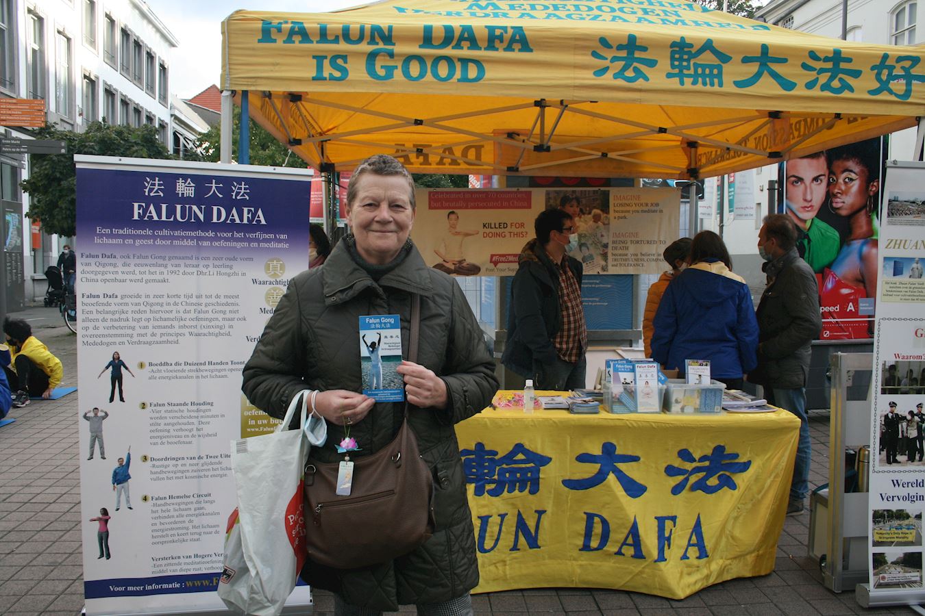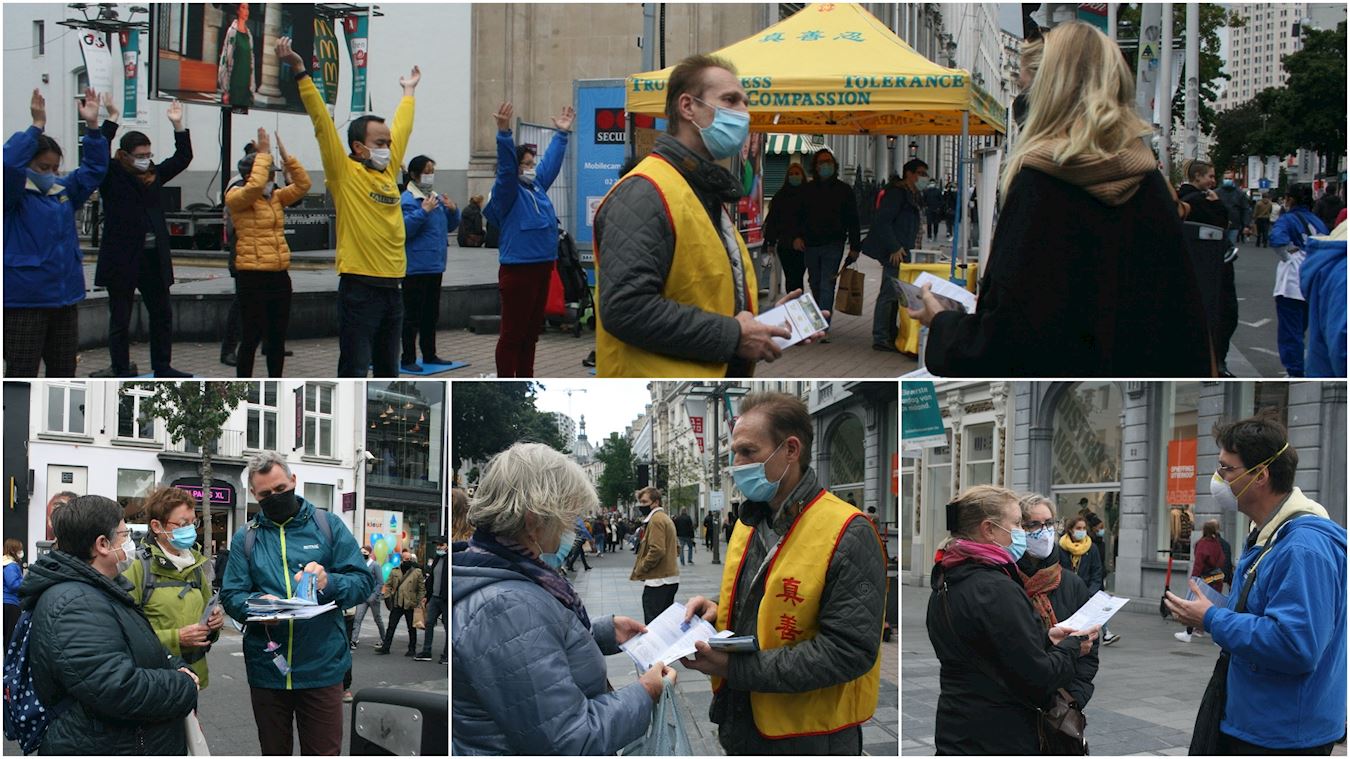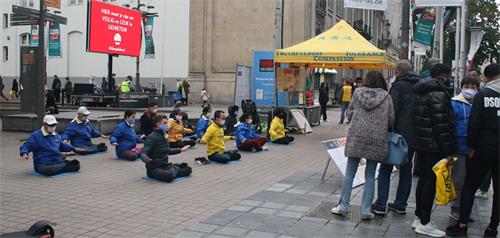 法轮功学员在安特卫普的活动,引来众多的民众关注。有位先生说他多年前自己通过法轮功网站,在家学炼功法,后来因故停止了修炼,今天有幸再一次看到法轮功,他很高兴的说:我会再重新开始修炼法轮功的。