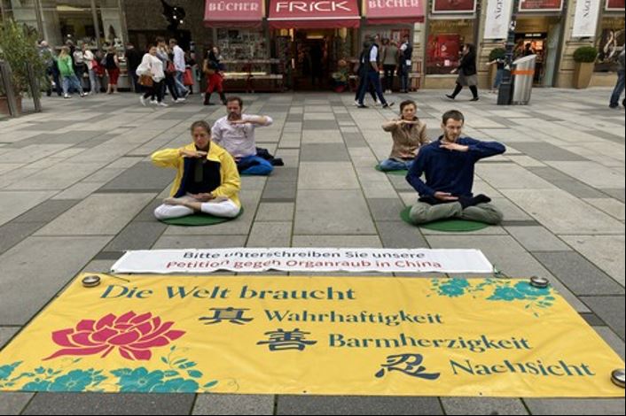 ![]() 图1:法轮功学员在维也纳老城著名商业街格拉本大街打坐 |
