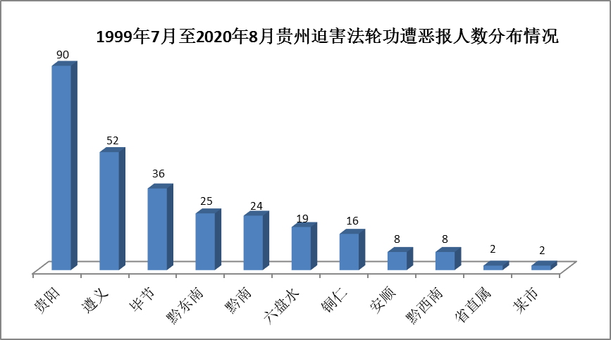 ![]() 图1:1999年7月~2020年8月贵州各部门参与迫害法轮功而遭恶报人数统计 |