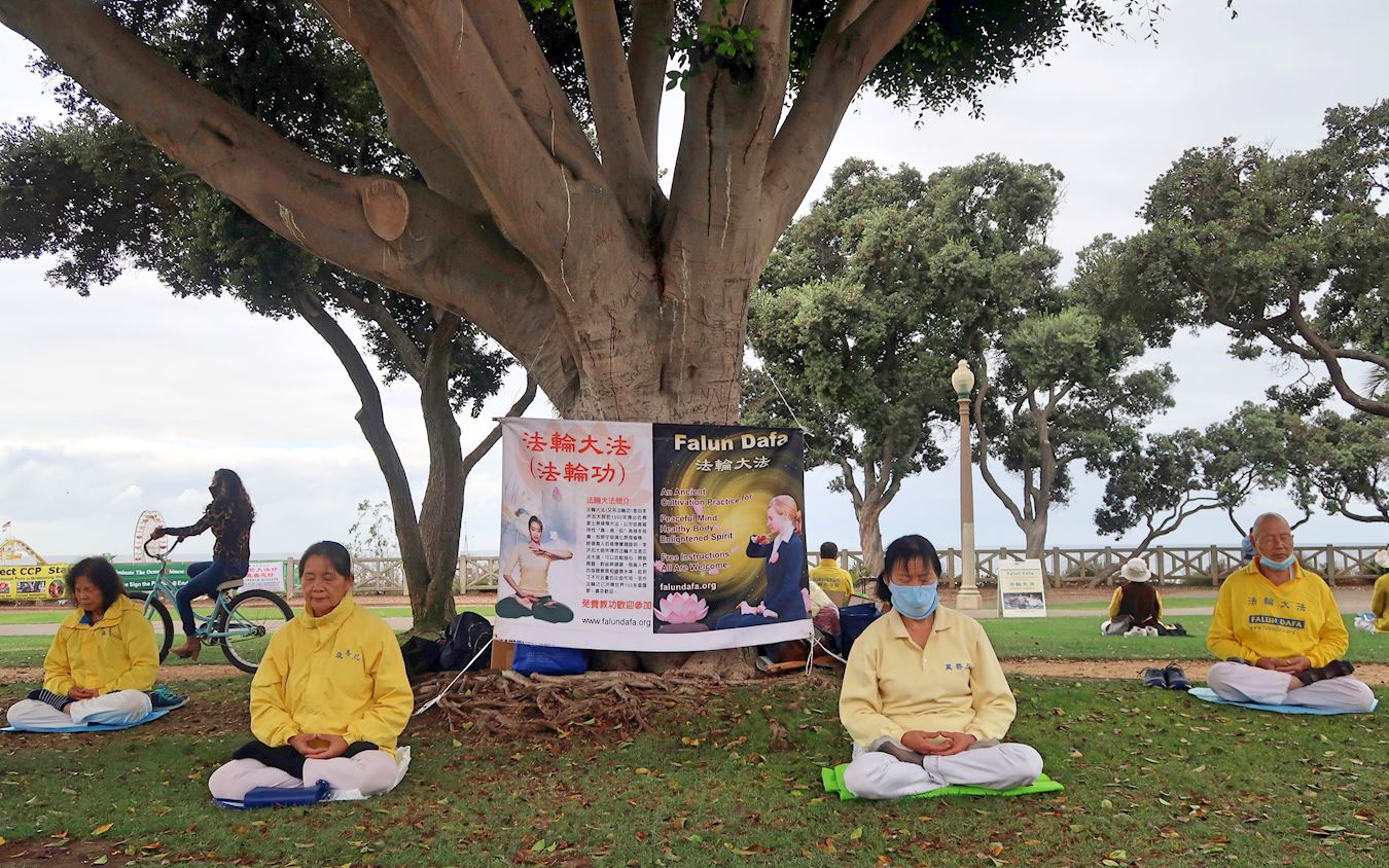 ![]() 图1~2:二零二零年十月以来,洛杉矶法轮功学员每个周日都会来到世界旅游景点圣莫妮卡海滩集体炼功,告诉人们法轮功的美好。 |