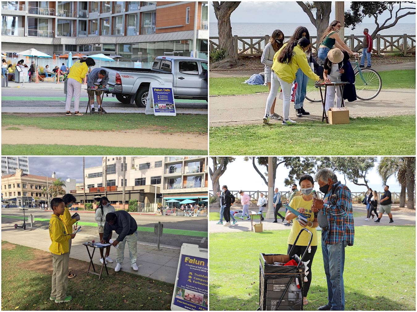 ![]() 图4:二零二零年十月以来,洛杉矶法轮功学员每个周日都会来到世界旅游景点圣莫妮卡海滩告诉民众中共的邪恶,了解真相后的民众纷纷签名支持解体中共。 |