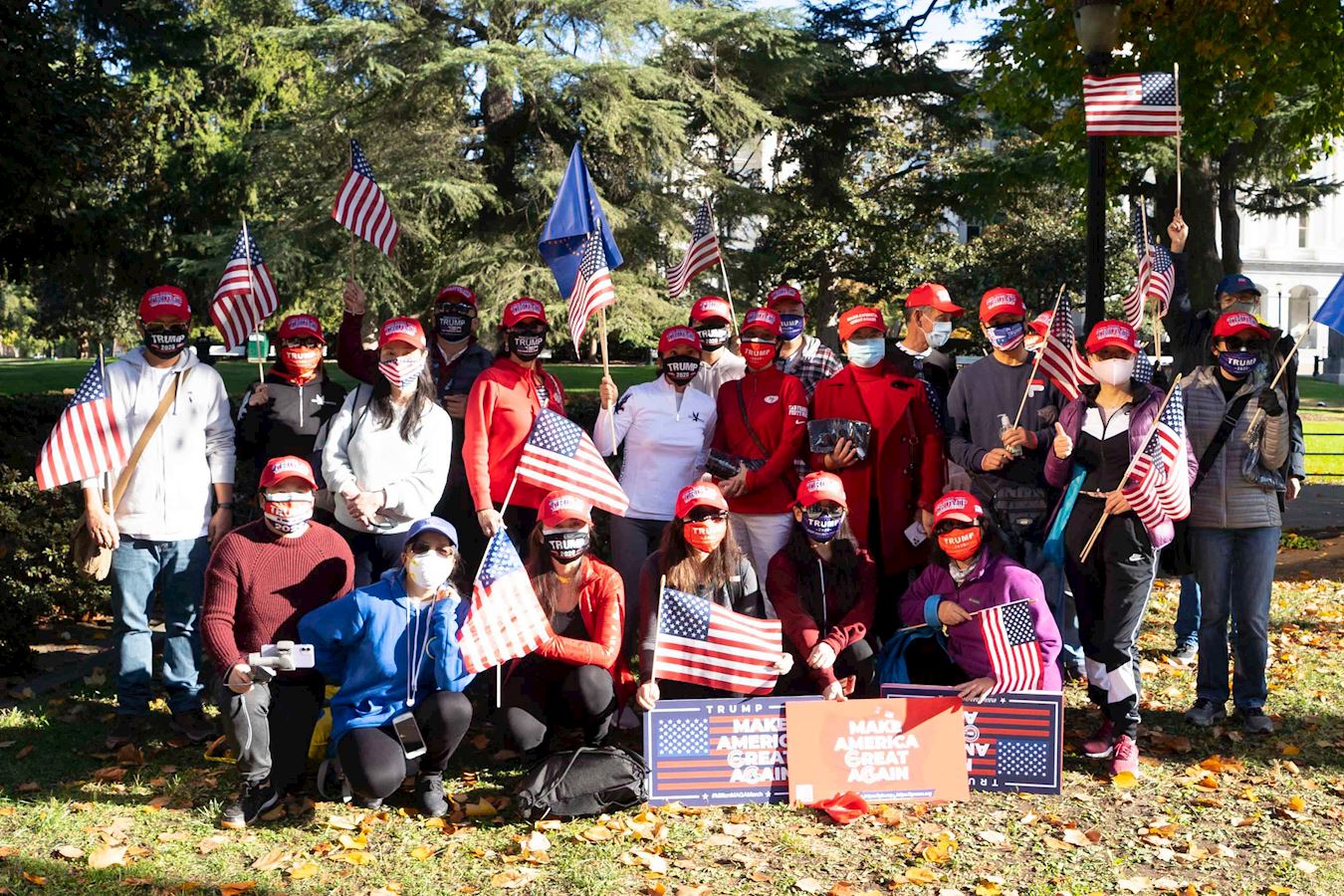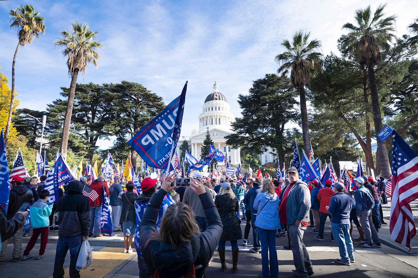 ![]() 图1~4:二零二零年十一月十四日,数百名民众在美国加州首府沙加缅度集会,支持美国总统川普连任。 |
