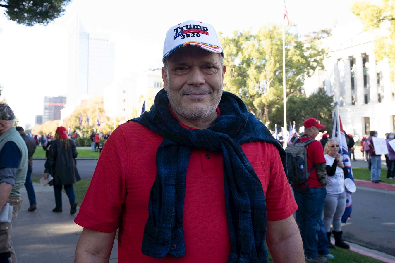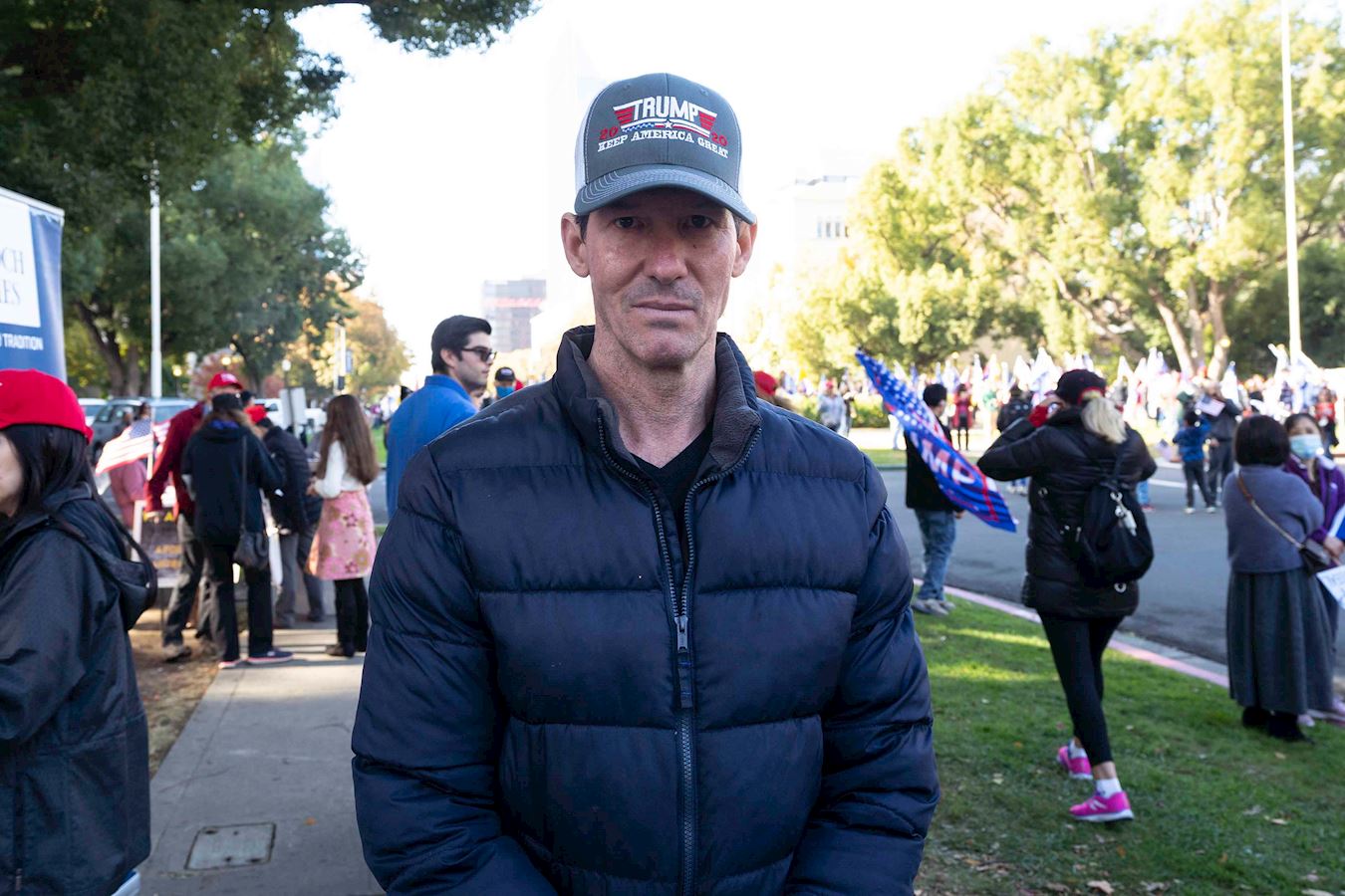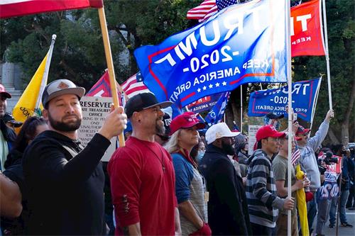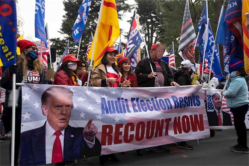 来自北加州丹维尔(Danville)市的大卫·加斯凯(David Gaskell)说,他来这里支持世界上最伟大的总统。如果过滤掉欺诈选票,川普会大胜。川普是值得人们敬佩的总统。